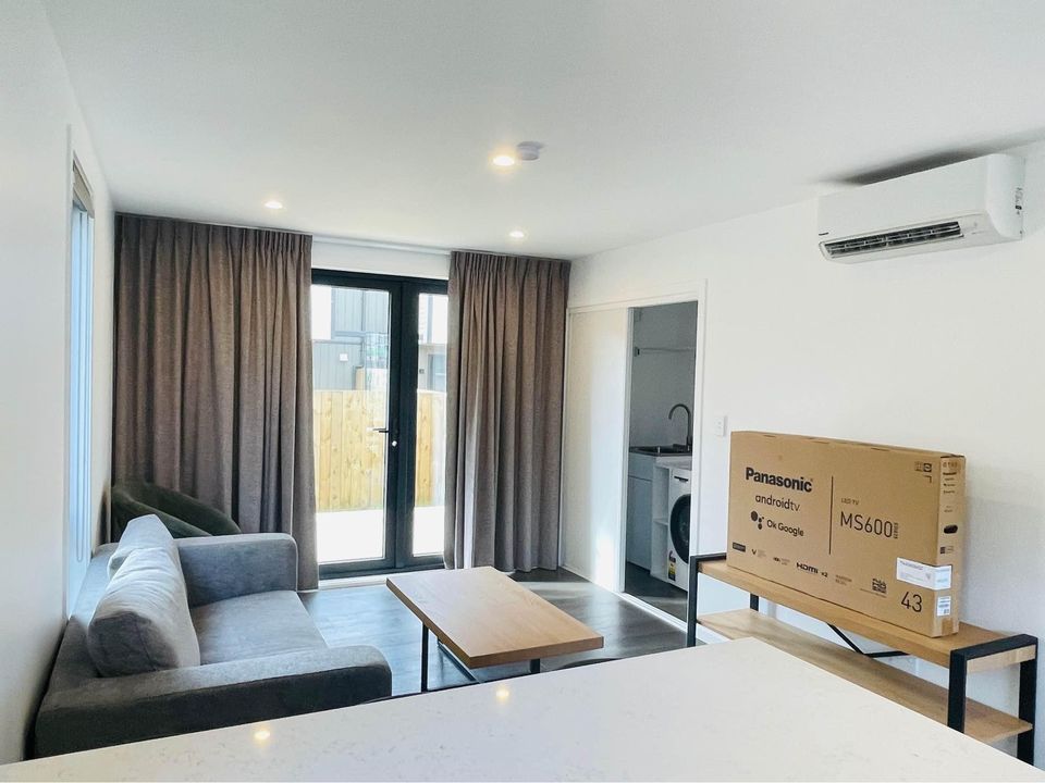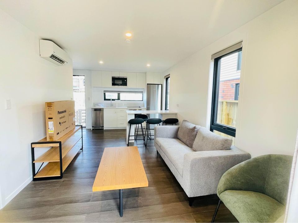 A brand new fully furnished home with modern open Kitchen plan, spacious living area, with dining and lounge spaces with a heat pump to keep warm in the cold weather.