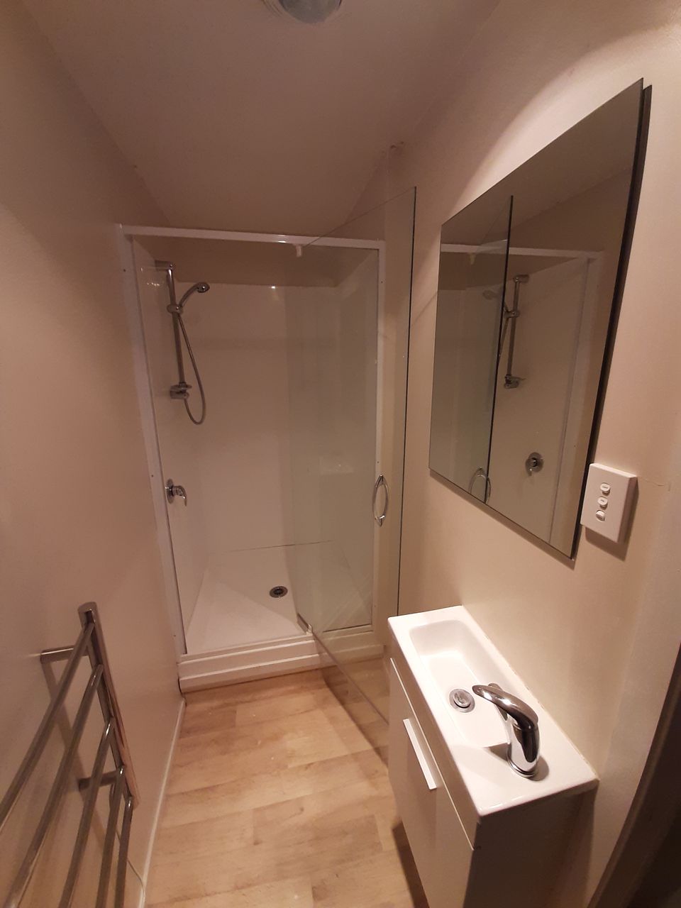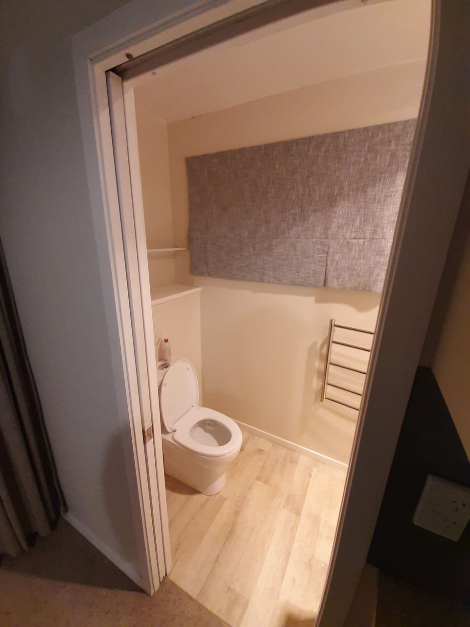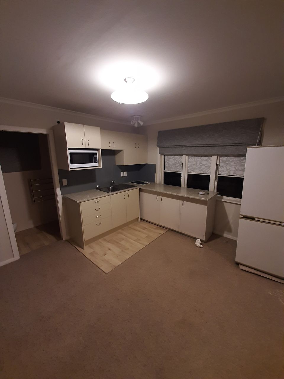 Its a small sleep-out attached to the main house. Has its own bathroom and a small kitchen area. Large walk-in wardrobe. Comes with microwave and a fridge. 10min walk from Main St, Upper Hutt.