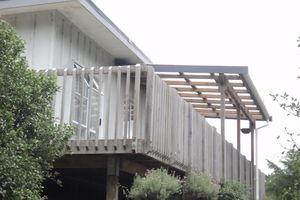 The house has a carport/lean-to enclosed on three sides and a wraparound deck. North facing and sheltered from the SW wind, the house has recently had underfloor insulation installed and has a wood burning fire, so is warm and cosy in winter.
