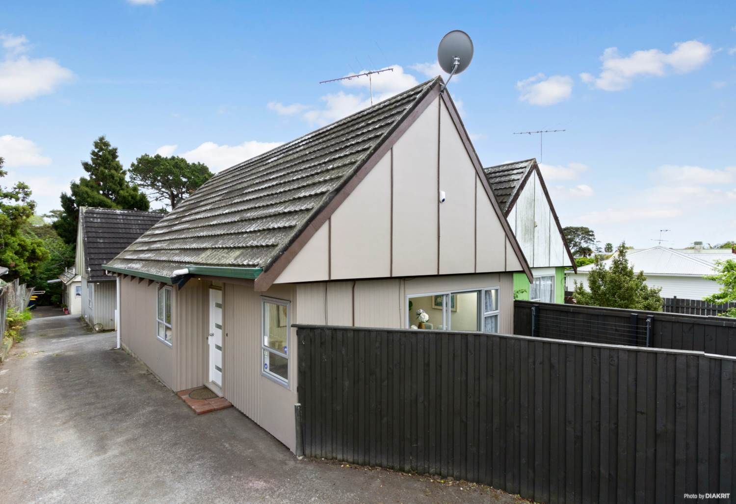 1970's cosy home on a cross lease title. There are 2 double bedrooms plus 1 study/office, a classy open plan living space with obvious flair dressed in modern neutral decor, inviting you to move in and enjoy. Also, there is a great outdoor flow through the ranch sliders from the open plan living to the BBQ deck and then to the fully fenced front garden. A perfect place to entertain or kids play. A carport at rear with one car space.