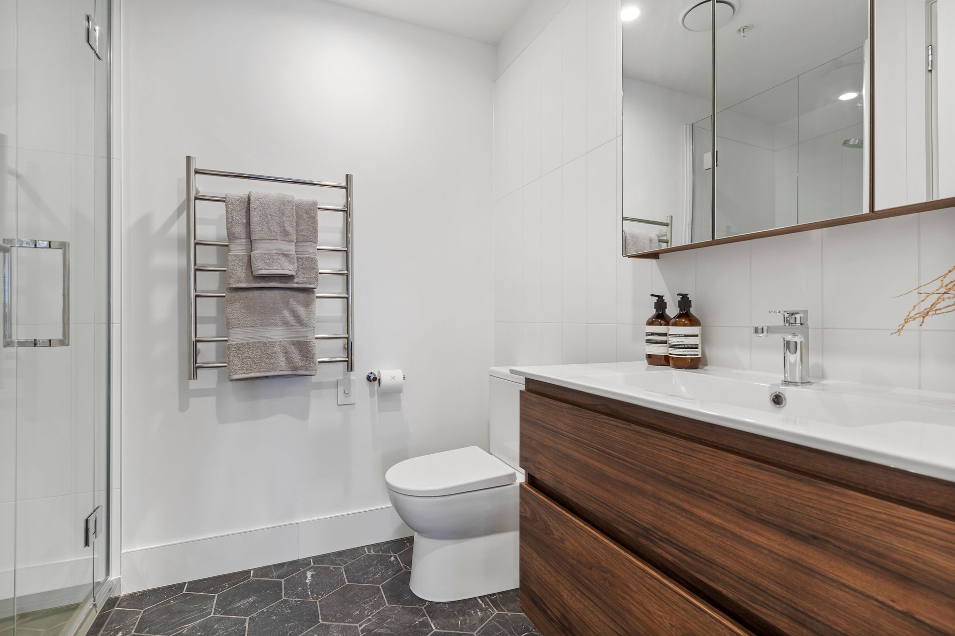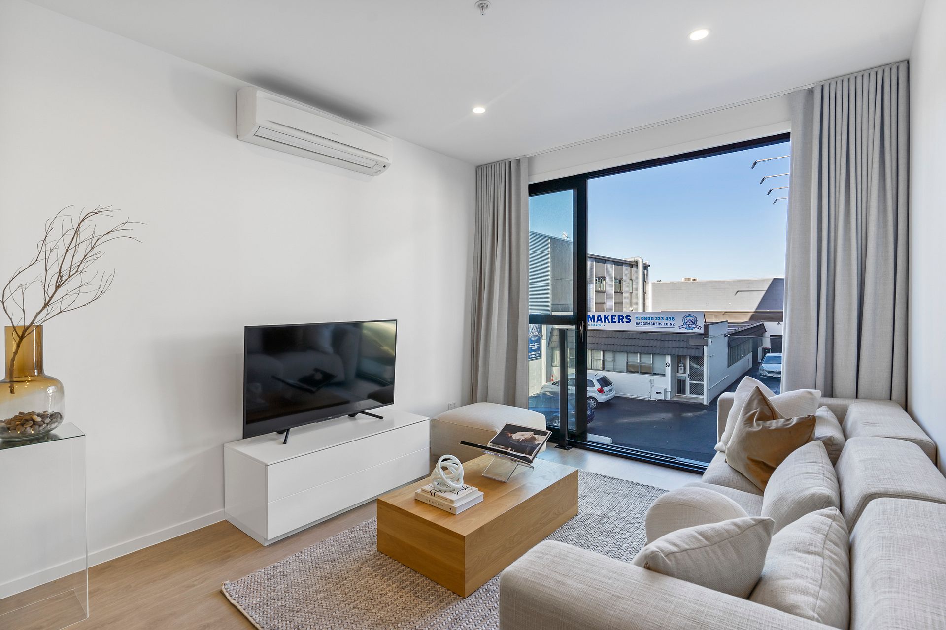 201 is on level 2 and is the only apartment available in the entire building. It is semi-furnished. The weekly rent of $655 includes a Queen bed, dining table & two chairs plus a sofa, as well as a stainless steel fridge/freezer, dishwasher, heat-pump, washing machine-dryer combo, Samsung cordless vacuum cleaner, secure bike storage, storage lockers, and keyless entry via your smartphone. Gated carparks from $80pw each.
