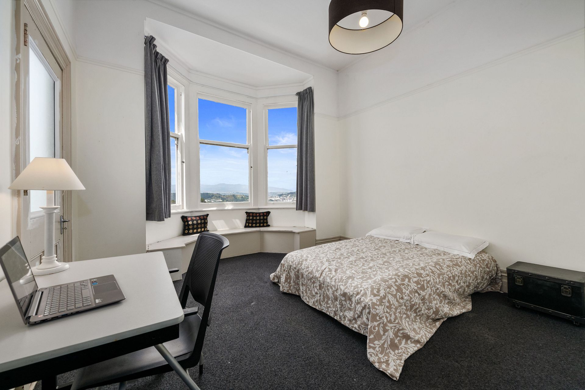 The property is about 8 minutes stroll to Kelburn village and 15-20 minutes stroll to Victoria University and the Cable car. There are multiple short cuts from Kelburn down to the city or Aro Valley, also a good choice of bus routes close by.