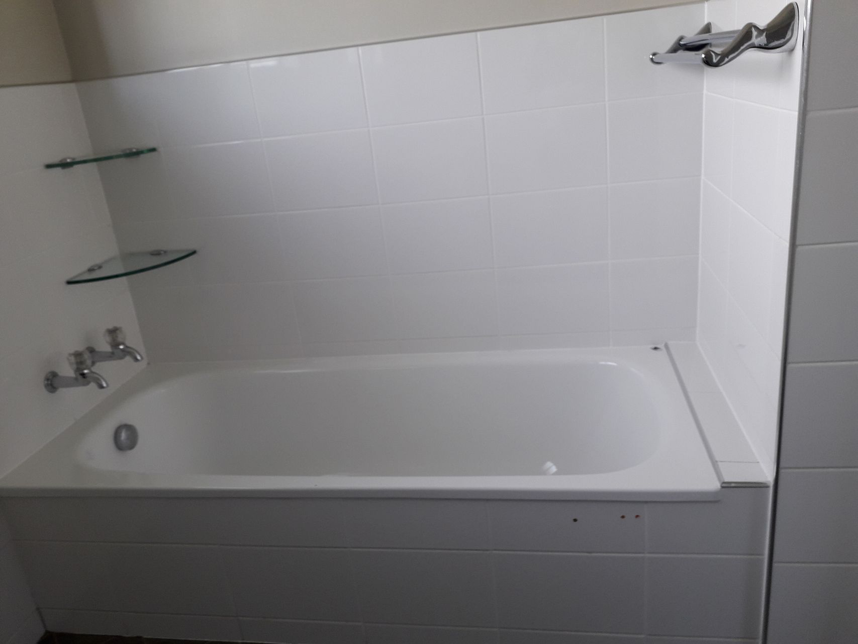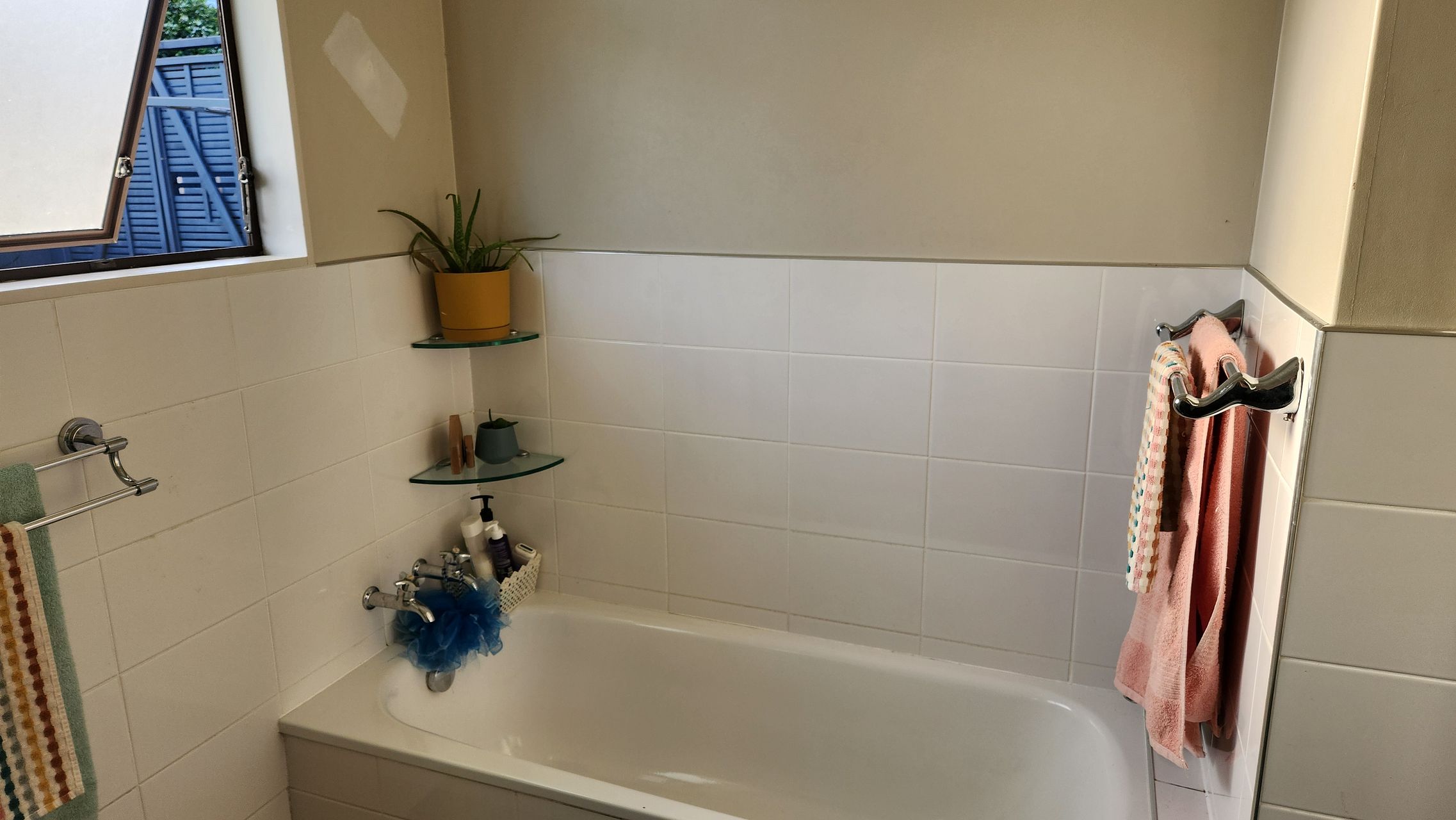 Separate laundry and toilet. Bathroom has shower with dome and bath.