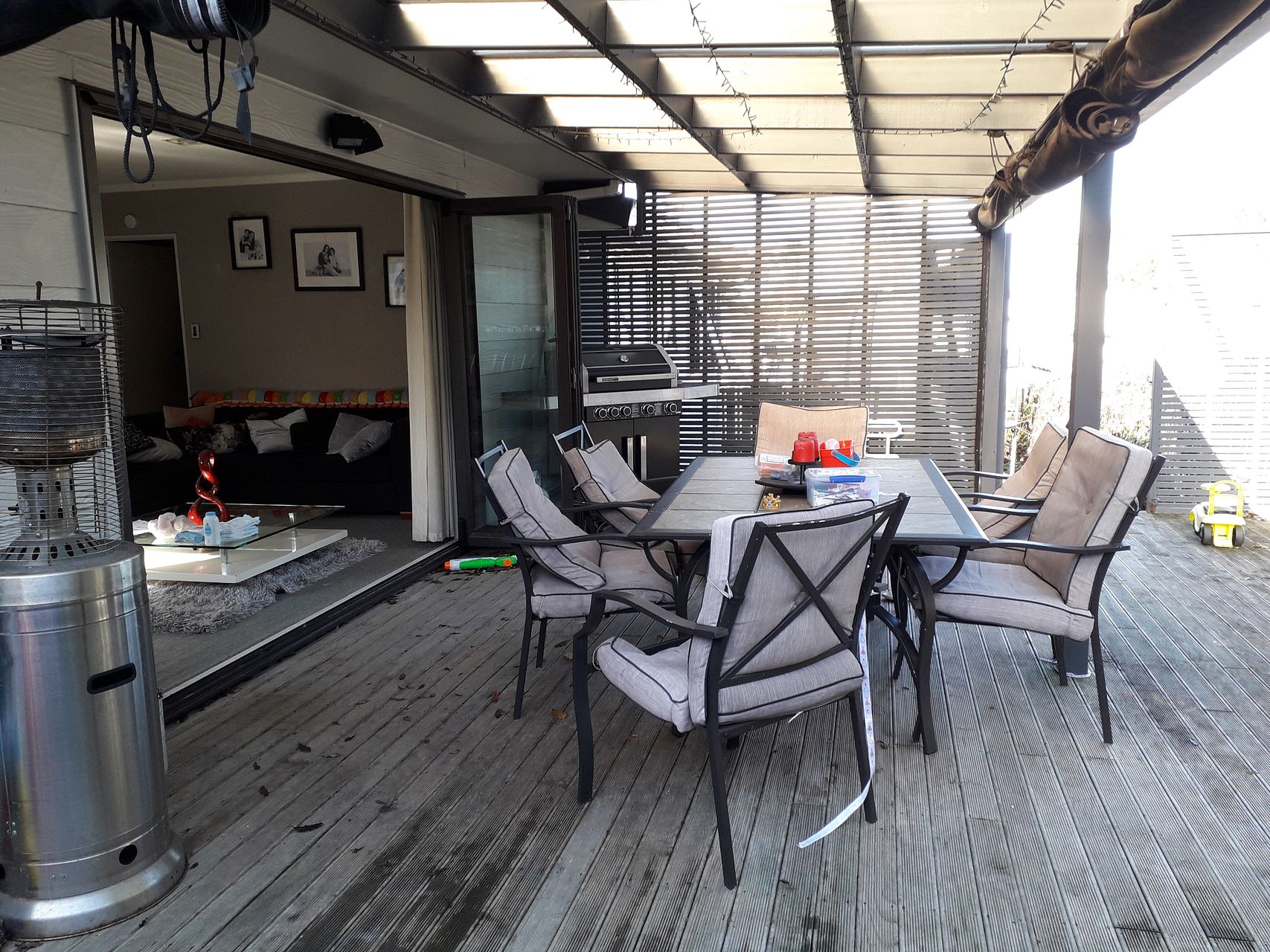 Open plan living and dining area. All weather entertainment area with very large deck off bifold doors from lounge. Very private with weather proof blinds to draw down in wet weather.