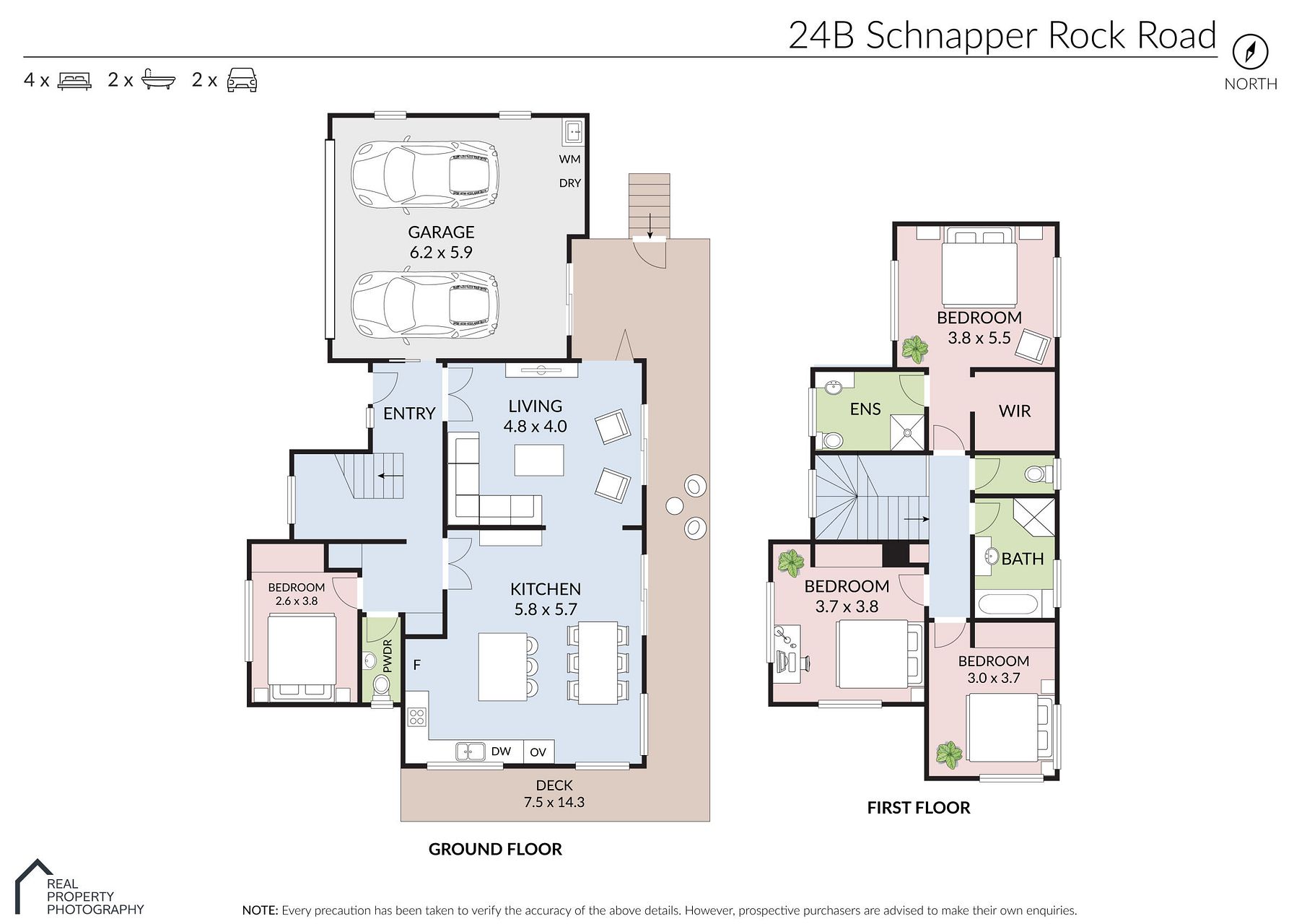 Double garage with internal access and multiple off-street parking.