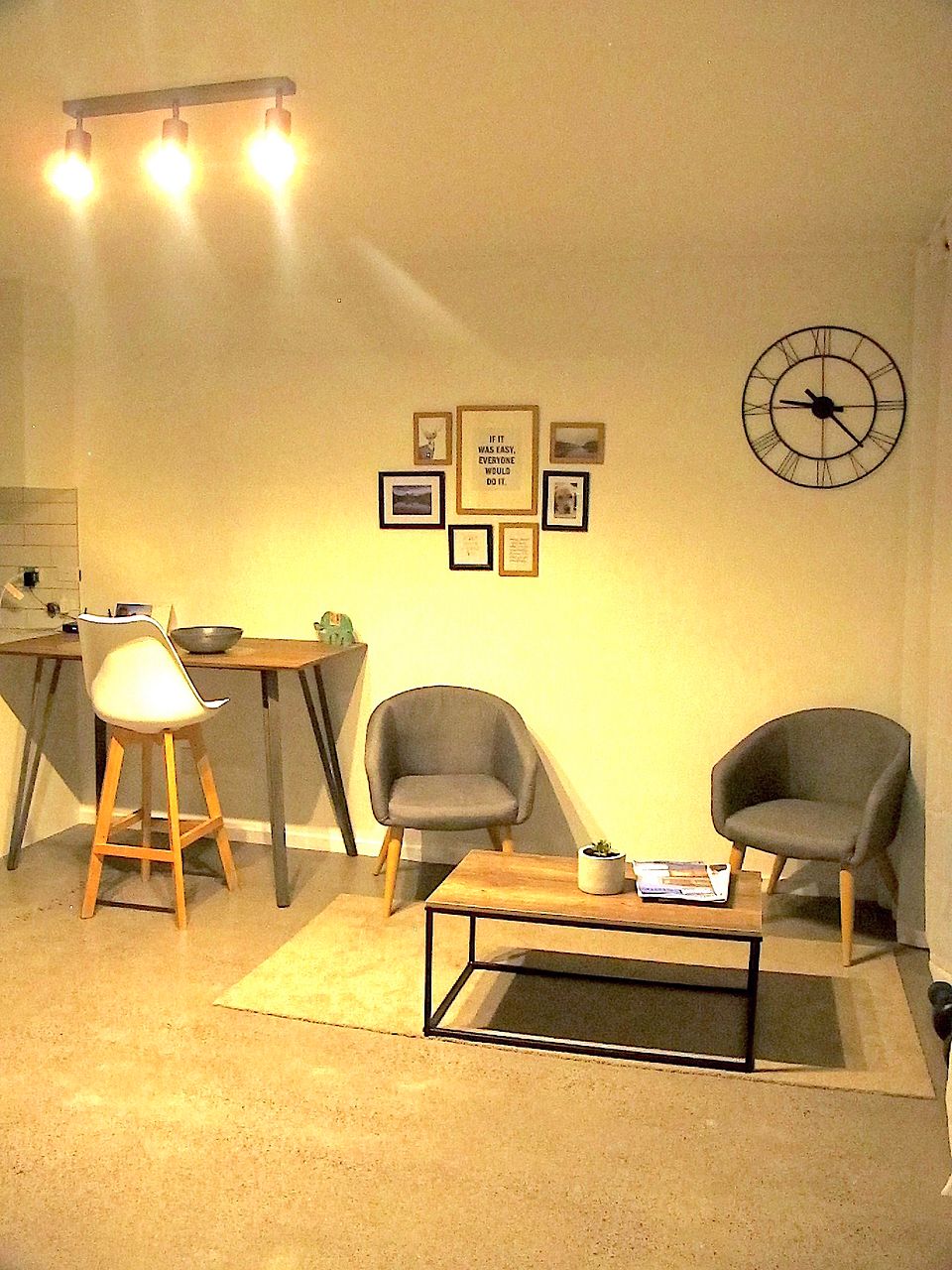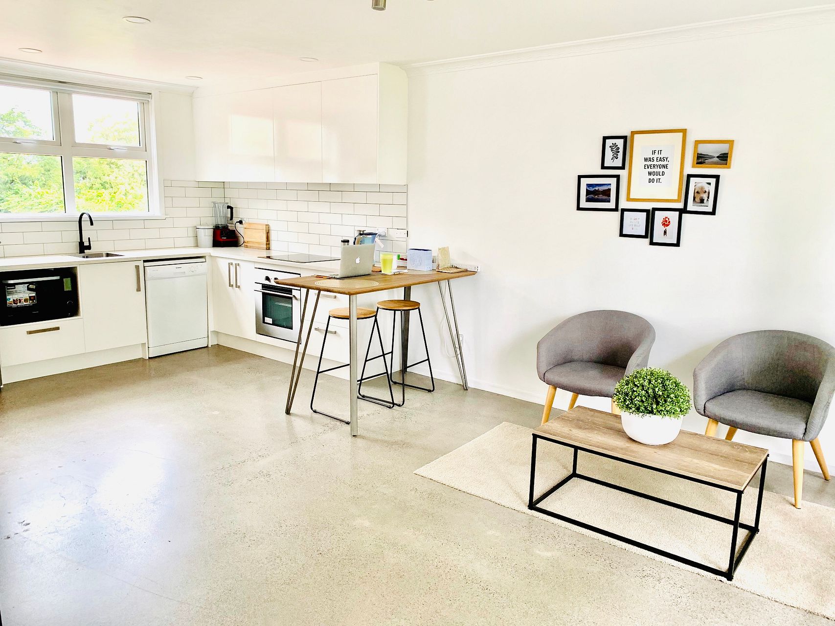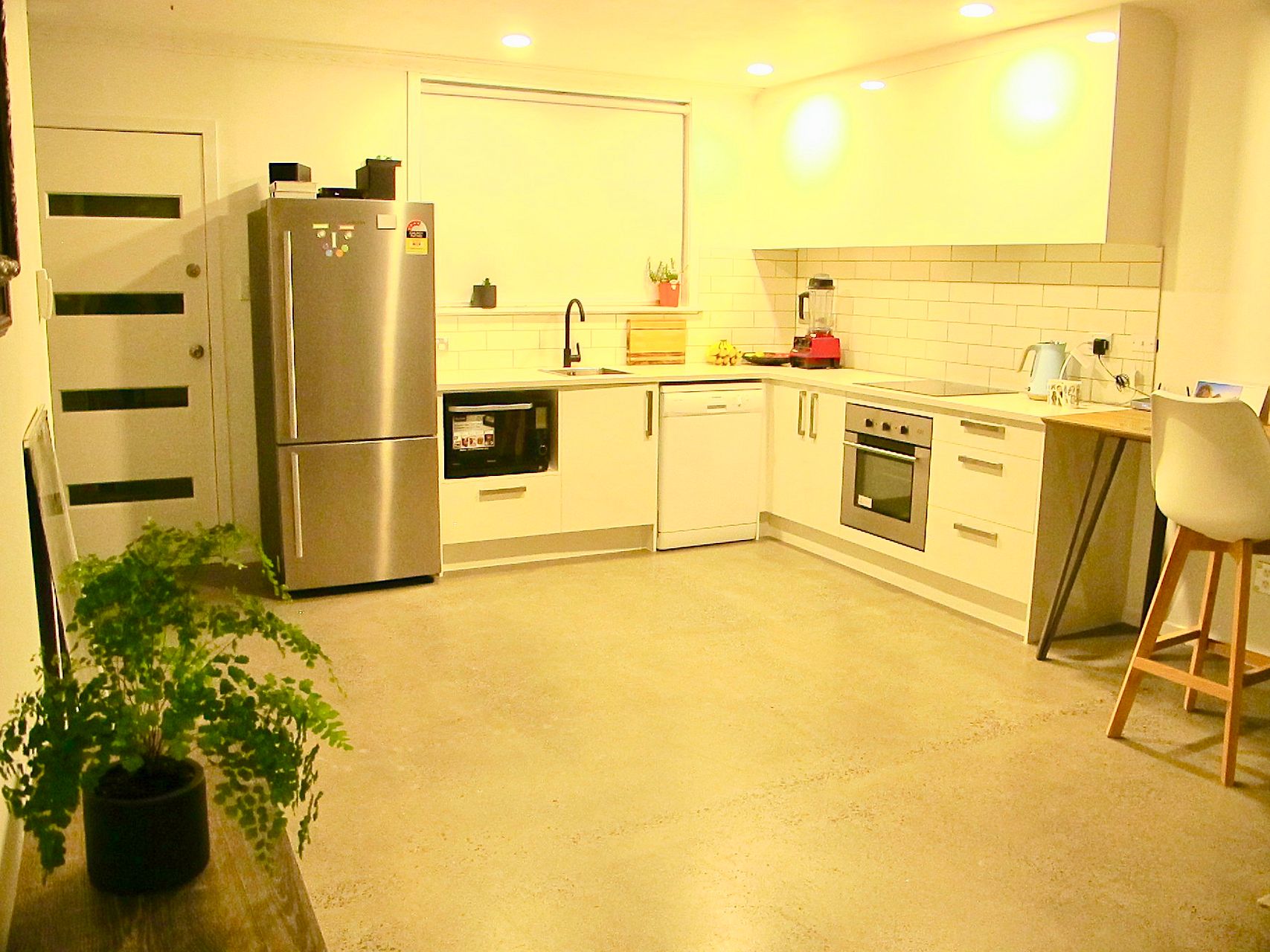 - Open plan living/dining, polished concrete floor
