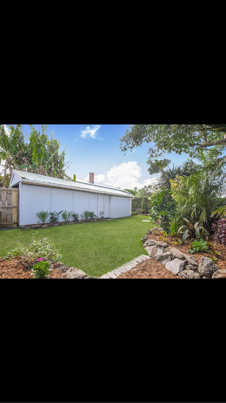 There is a garage plus a workshop and storage area. Across the road is Buchanan Park . We maybe happy with a small dog or cat