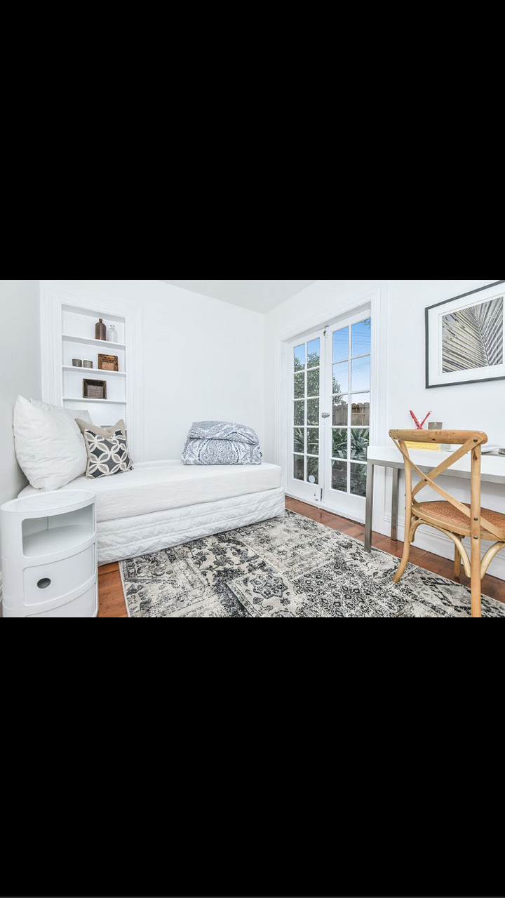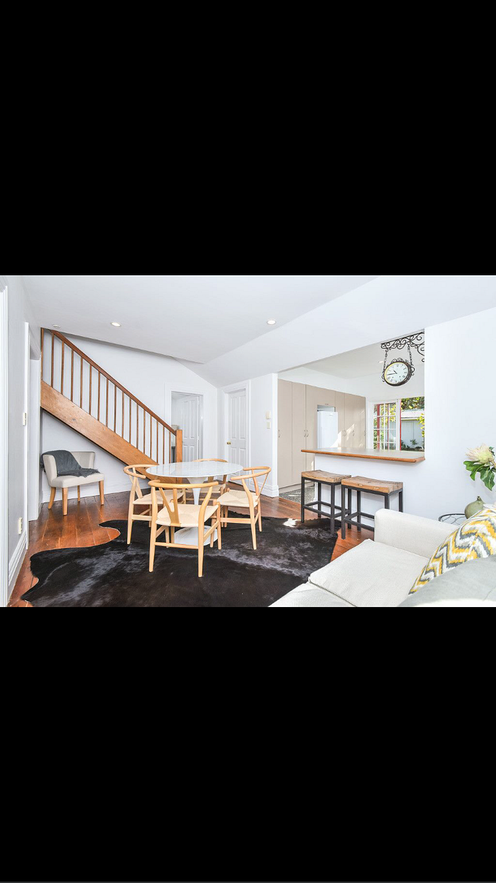 Gorgeous character villa with native timber floors and shutters . Five to ten minutes walk to dressmart and public transport and a few minutes drive to motorway access . Entertaining made easy with lounge , open plan dining flowing to a modern German kitchen . Kitchen includes Gaggenau oven /dishwasher and a gas cooktop .