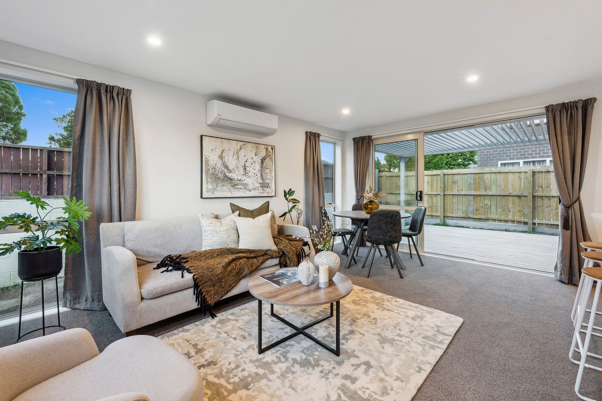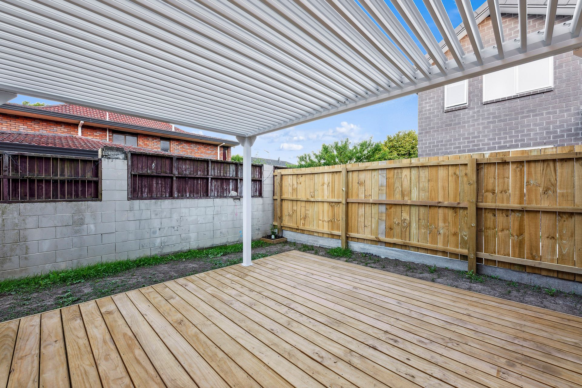 The residence is equipped with modern comforts including air conditioning for those warm Auckland summers, and heating to keep you cozy during cooler weather. Each bedroom features a built-in wardrobe, offering ample storage space. The home also includes a spacious courtyard, a deck perfect for entertaining, and a fully-fenced garden, providing both privacy and an area to relax outdoors. The property's convenience is further enhanced with 2 dedicated parking spots.