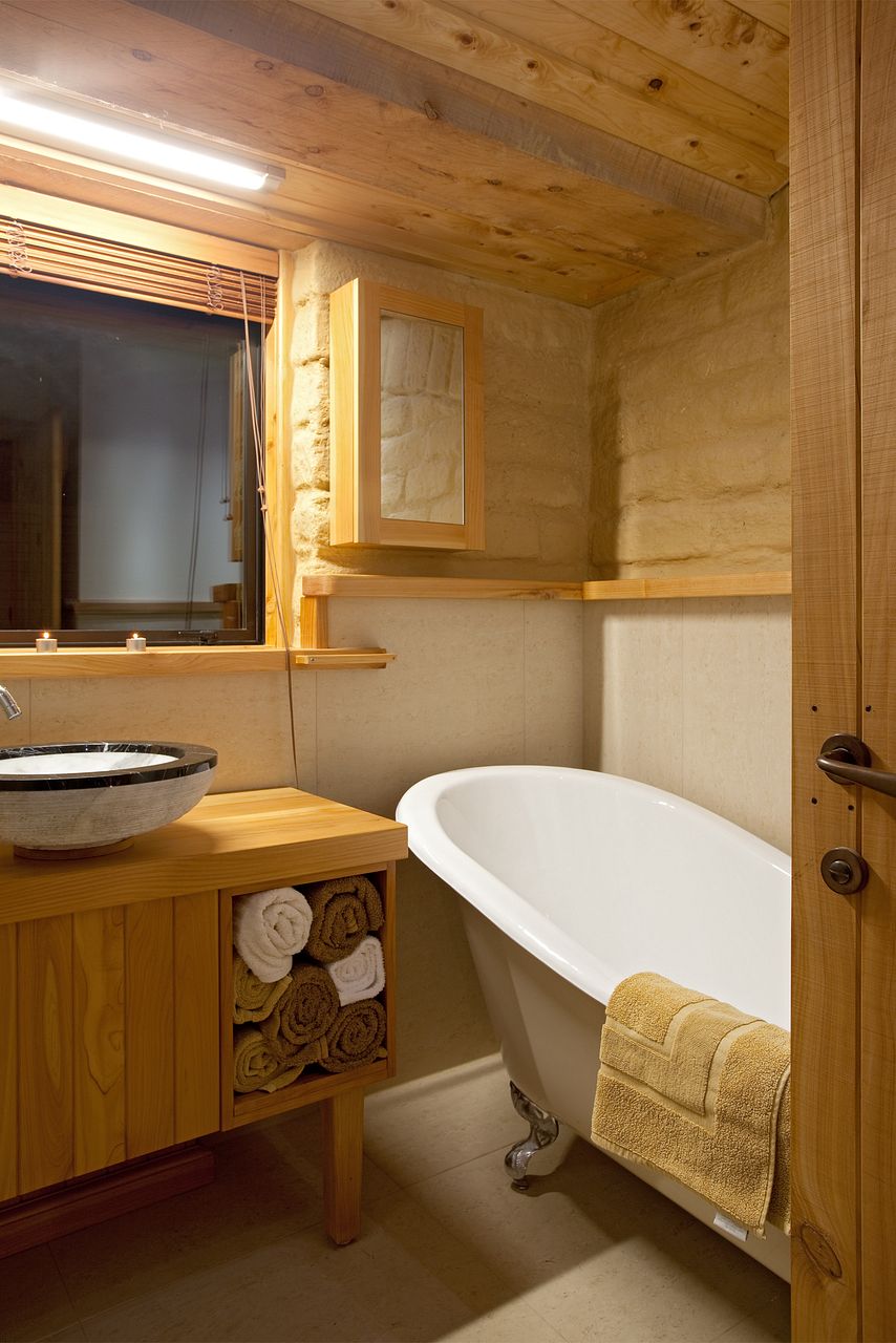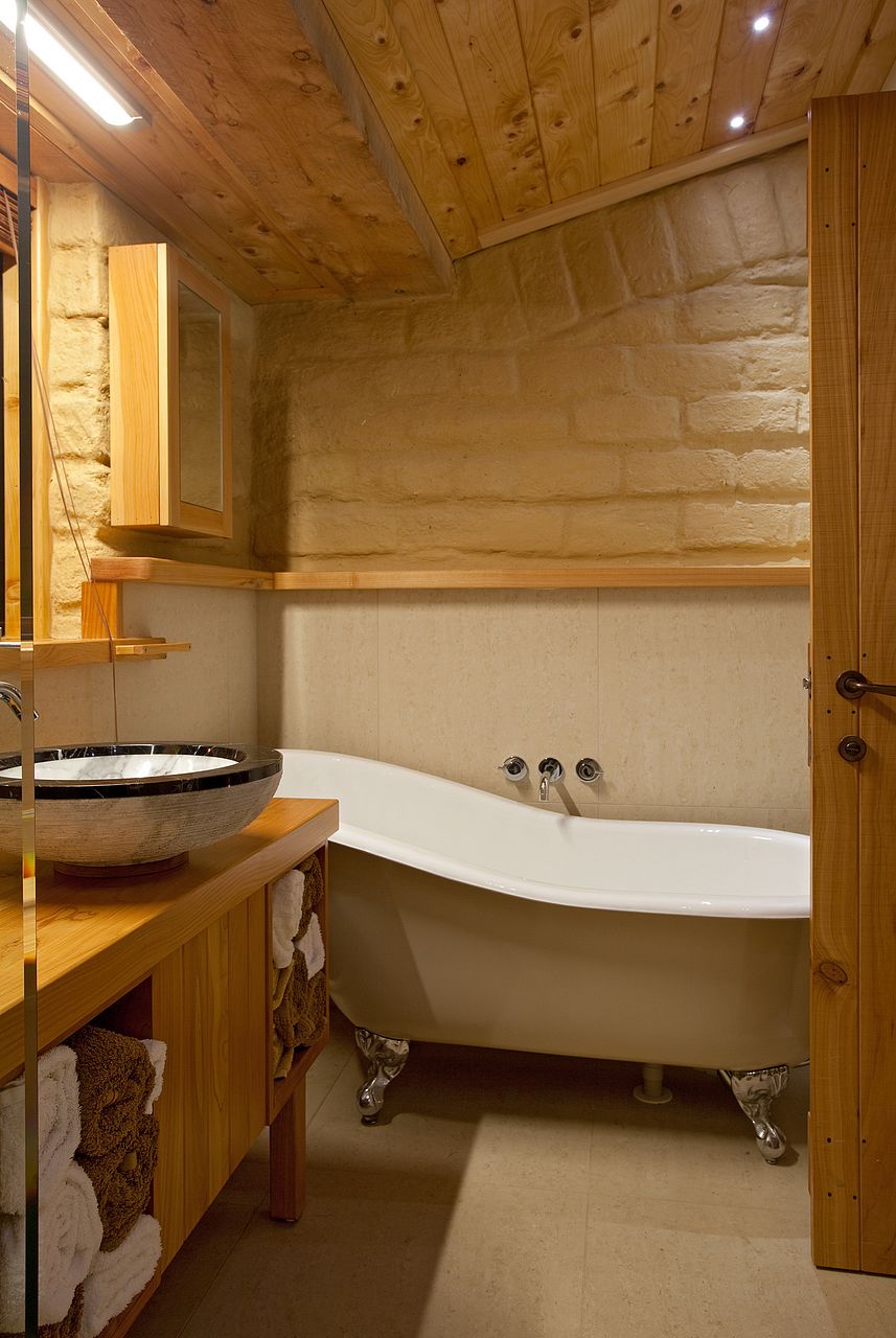 The bathroom has a lovely walk in shower and an elegant claw foot bath.