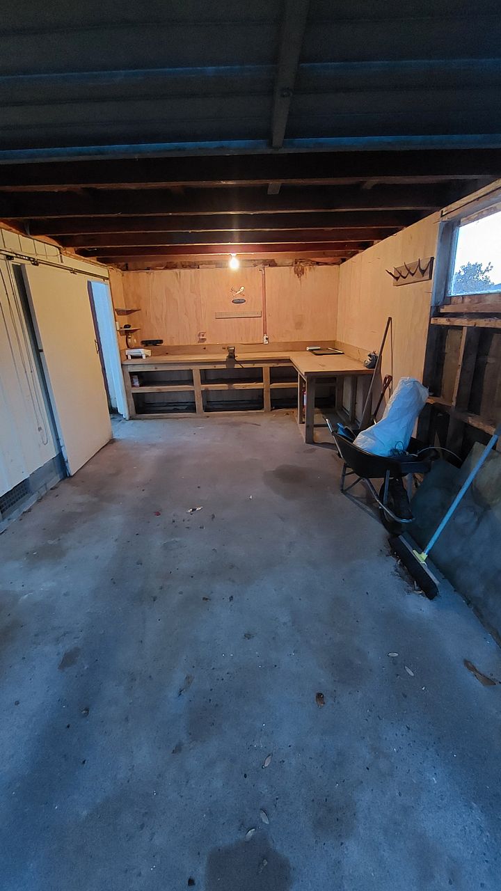 Single garage with a workbench
