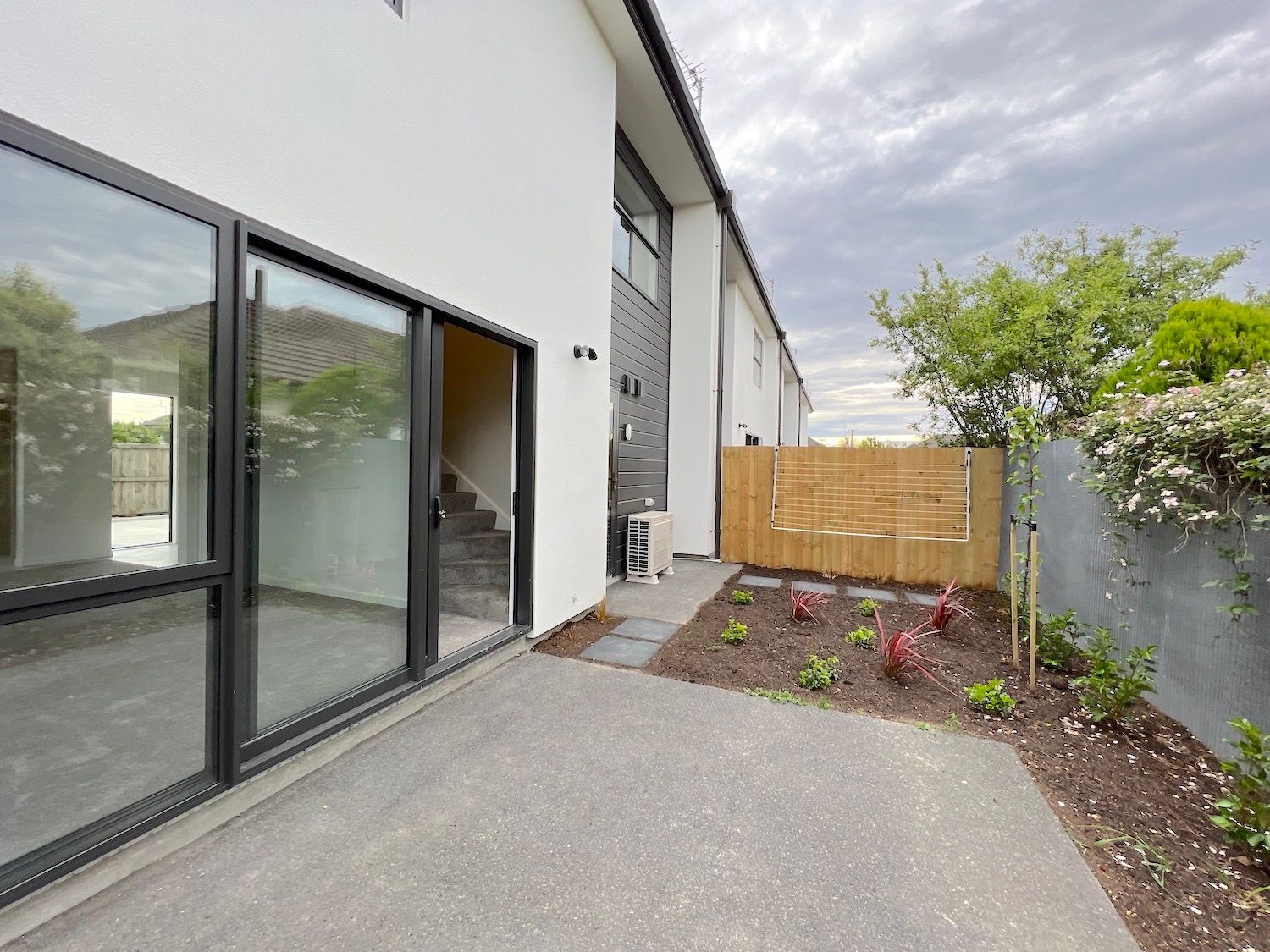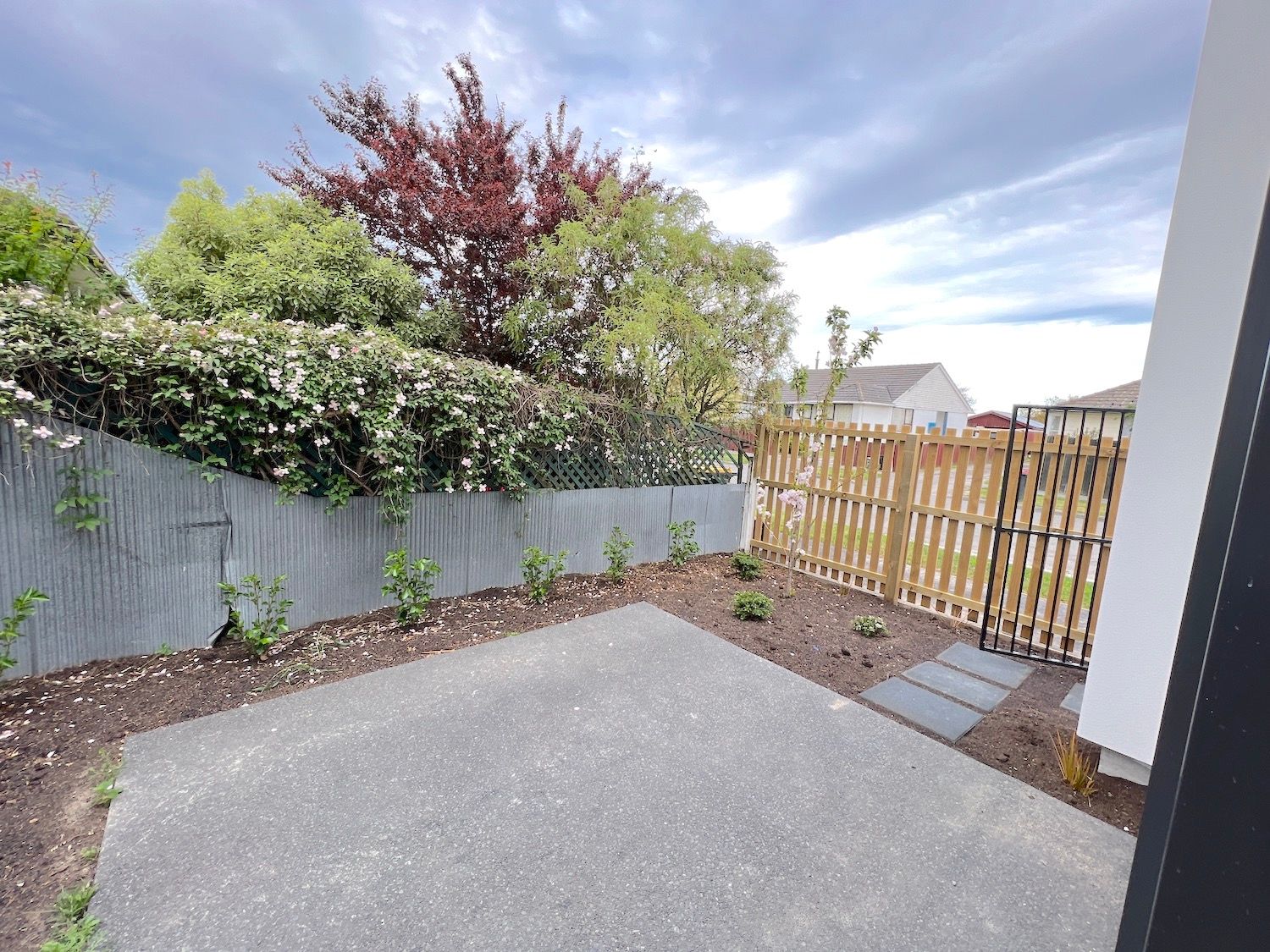 There is a fully fenced wee garden with nice landscaping.