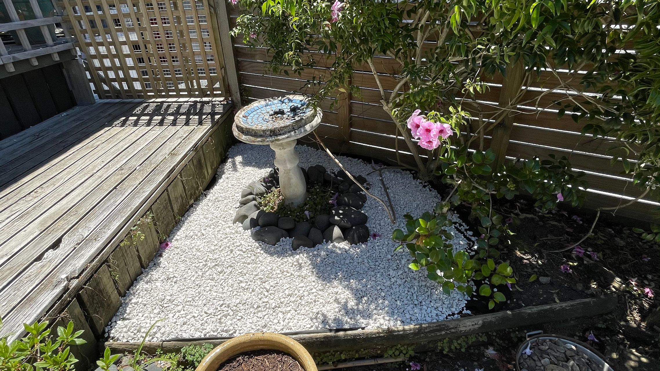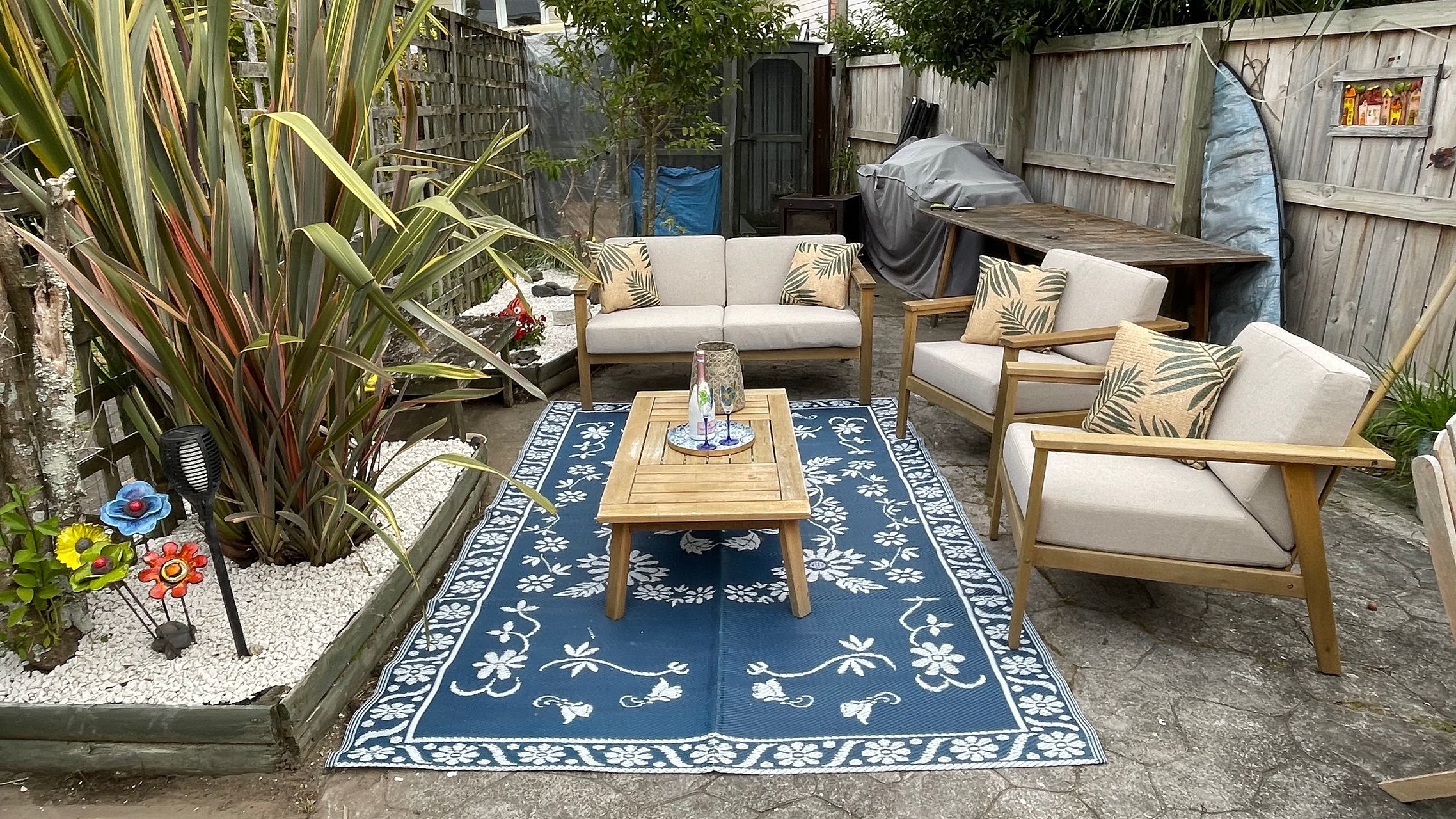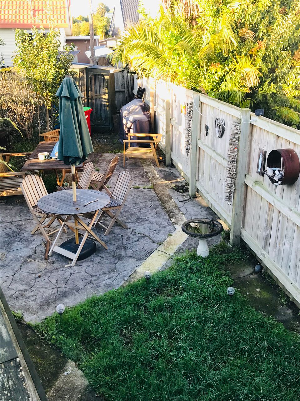 Large, fully fenced garden with fruit trees and macadamia hedge. Sunny decks front and back, space for the tramp and private courtyard. Large carport and off street parking for two or more cars.