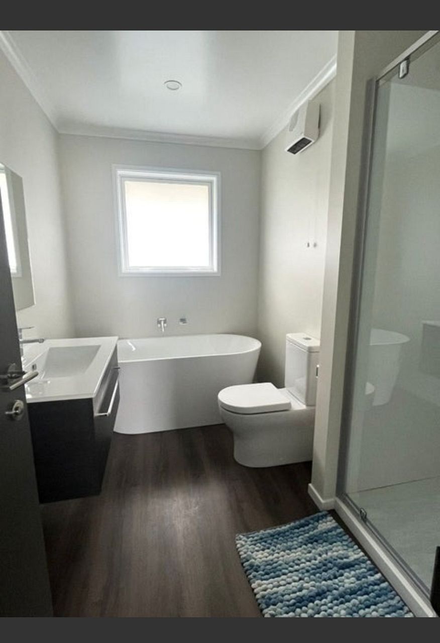 Bathroom with bath, vanity, separate shower and toilet, ensuite with toilet and shower