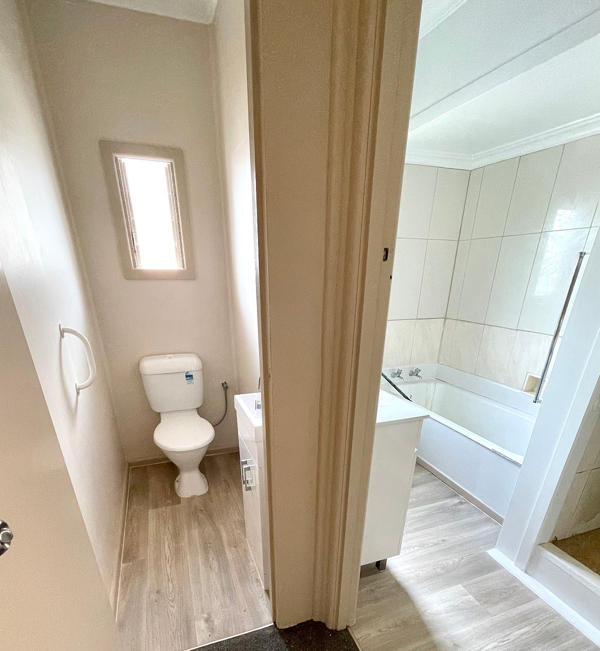 3 Bedrooms. 1 Bathroom with 1 toilet, and 1 separate toilet. Separate laundry/washing area. Dining area and living area with heating, plus a big separate kitchen (not open plan). The property is unfurnished! Big outdoor area with front garden.