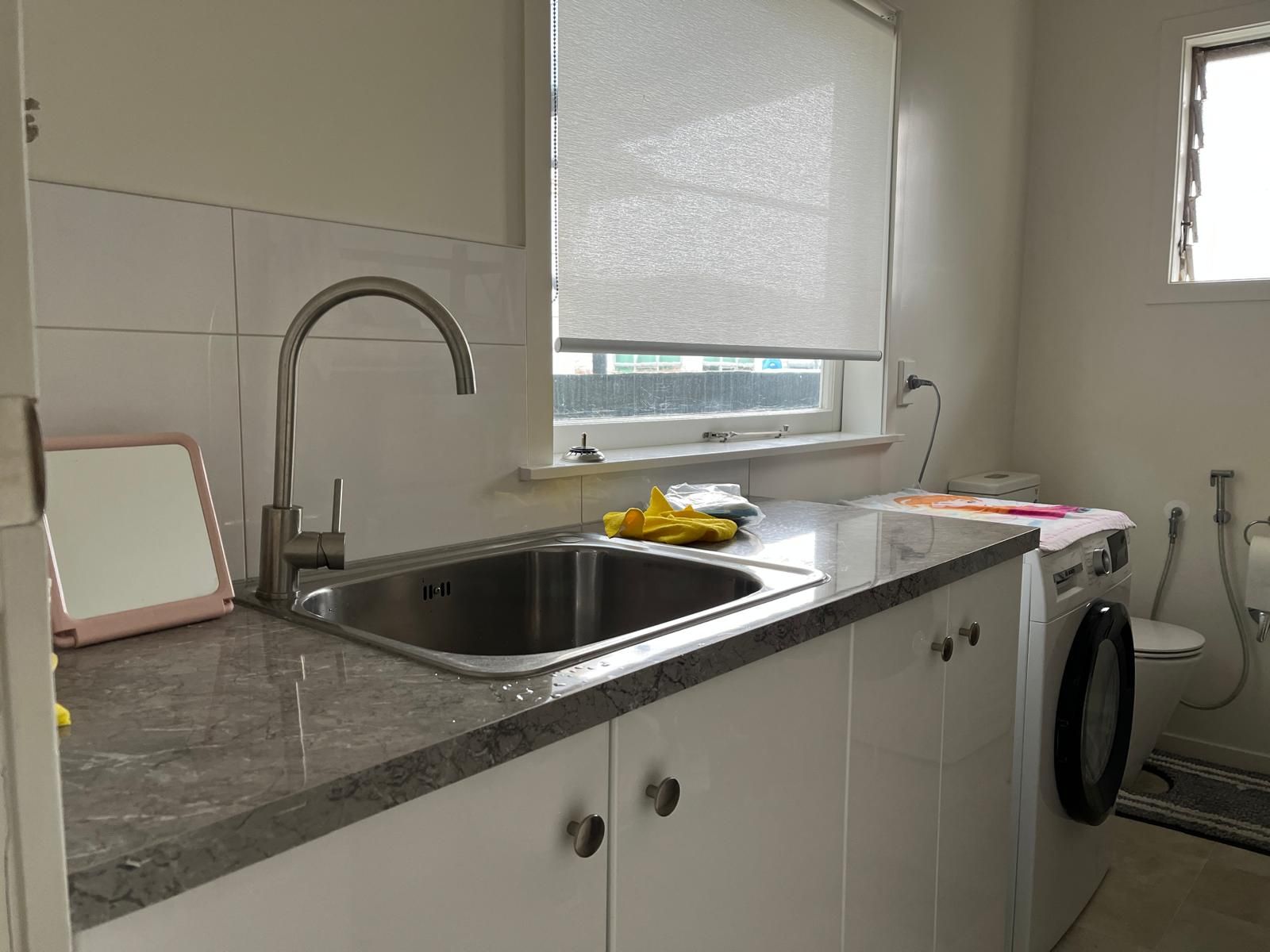 toilet off laundry. Sunroom/office. Separate Sleepout/Office Three off street parking