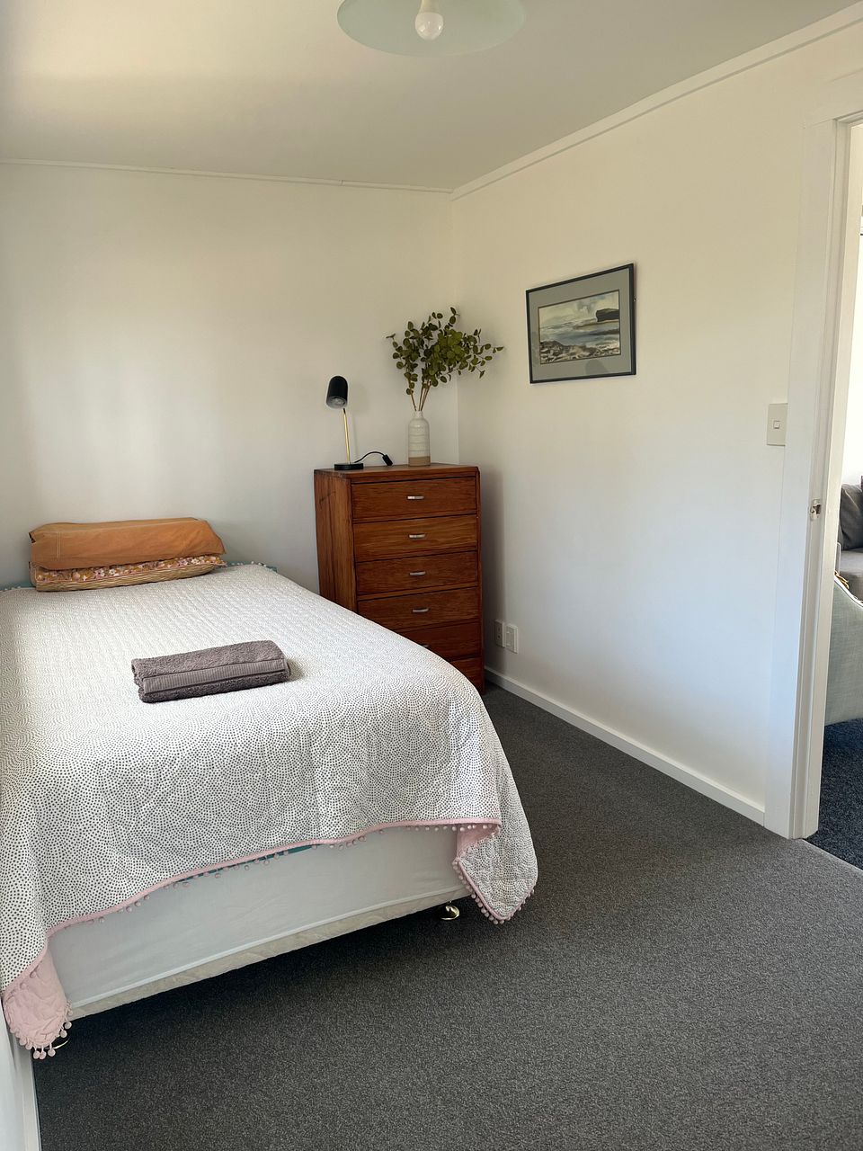 Our fully furnished house is located in Judea and on the main bus route. It has three bedrooms - 2 double and one single located off the garage which has been converted into a second lounge (all internal access). Two bathrooms - one being an ensuite and the other is a bathroom and a separate toilet. Seperate dining area and large fully equiped kitchen. Sunny house with off street parking available for 2 cars. Short term available and happy to negotiate rent for long term tenants. Rent includes all utilities - power (up to $300 per month), WIFI, water, garden and lawn maintenance, council rubbish and recycling.