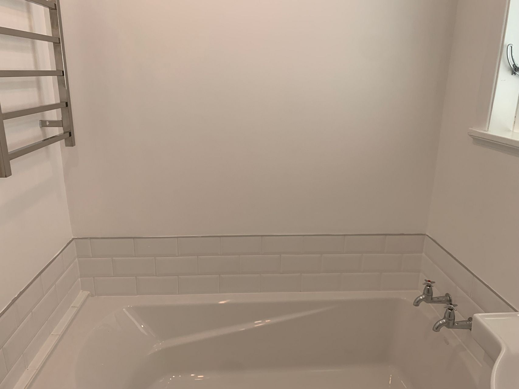 Bathroom has heating fan, bath and shower box.