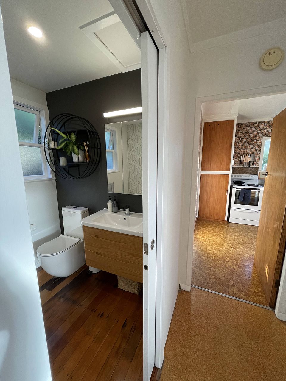 Retro kitchen with new dishwasher, plus a separate laundry and storage area. Small workshop under the house.