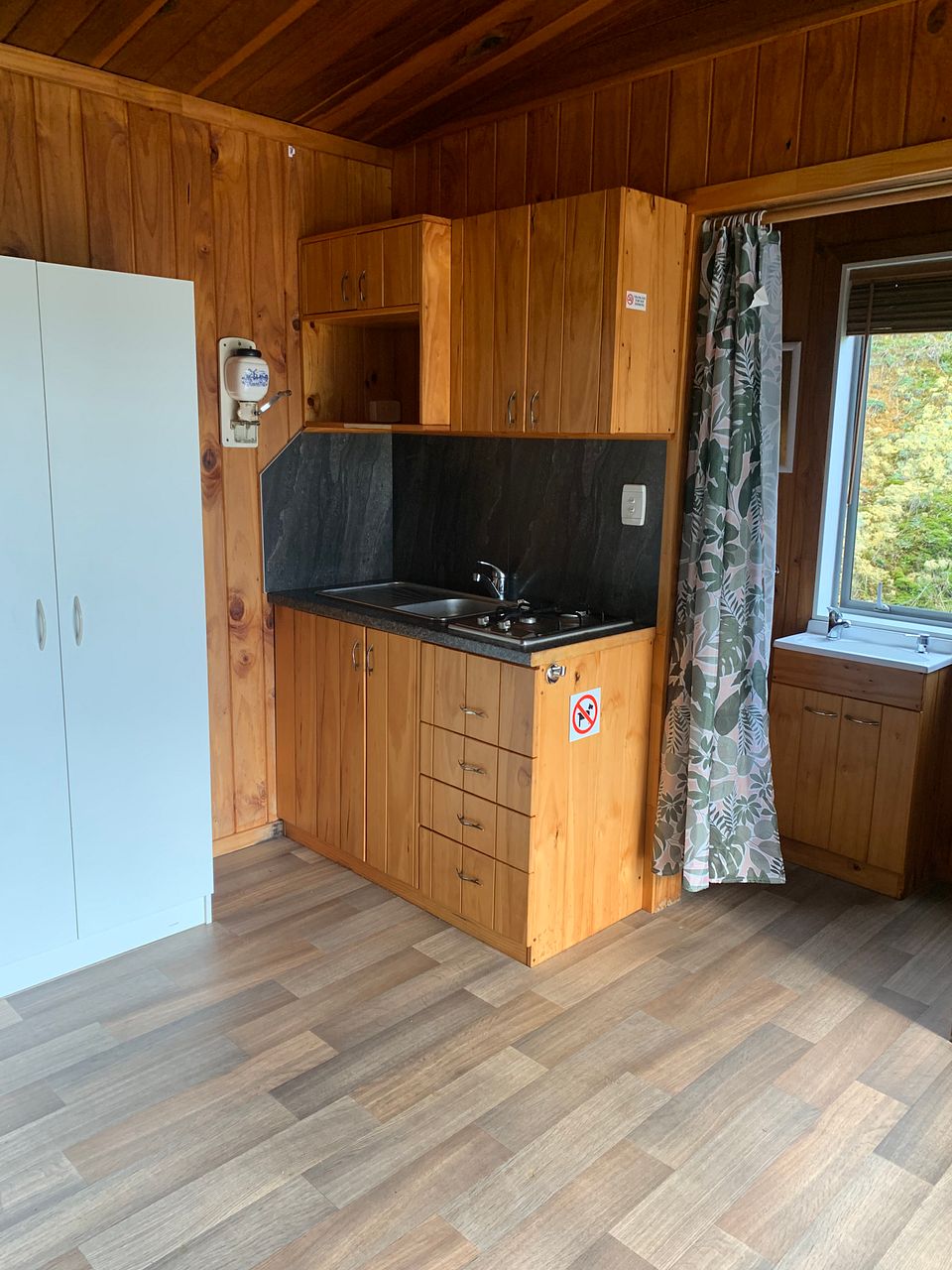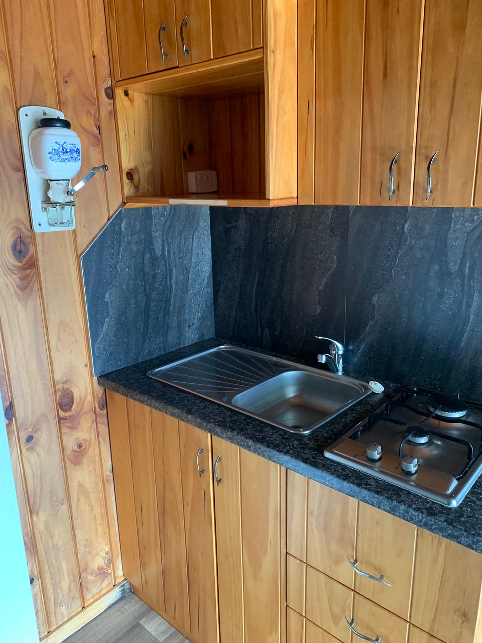 β’ Kitchenette with plug-in mini oven and grill