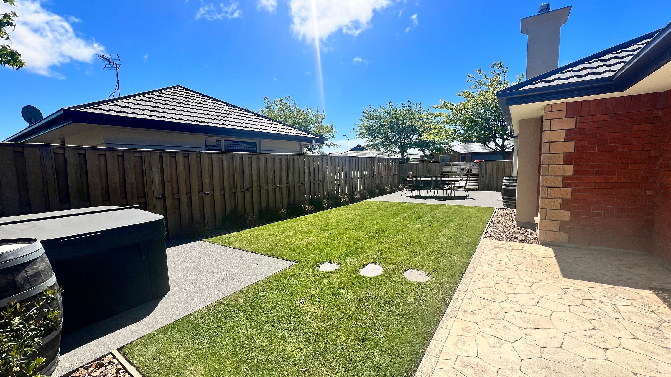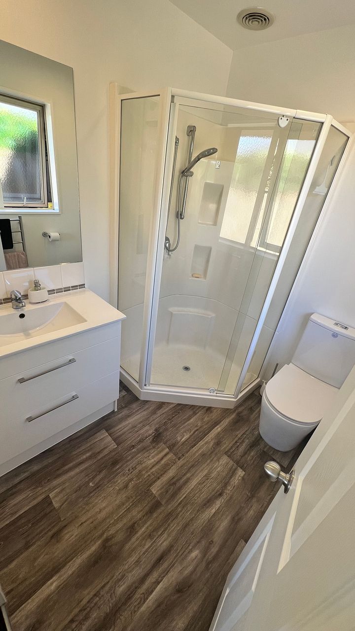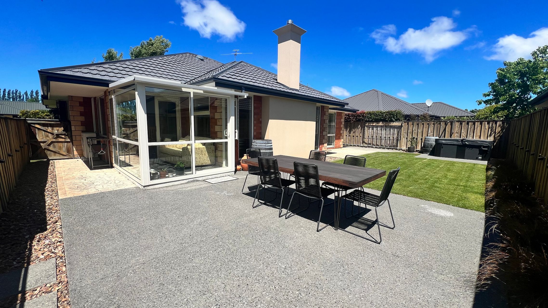 The kitchen, dining, and living area form an open-plan layout, complemented by a charming glass room that bathes the space in uplifting natural light on gloomy winter days. The low-maintenance backyard, fully fenced, is perfect for entertaining and boasts a spa pool, offering a tranquil retreat after a bustling day.