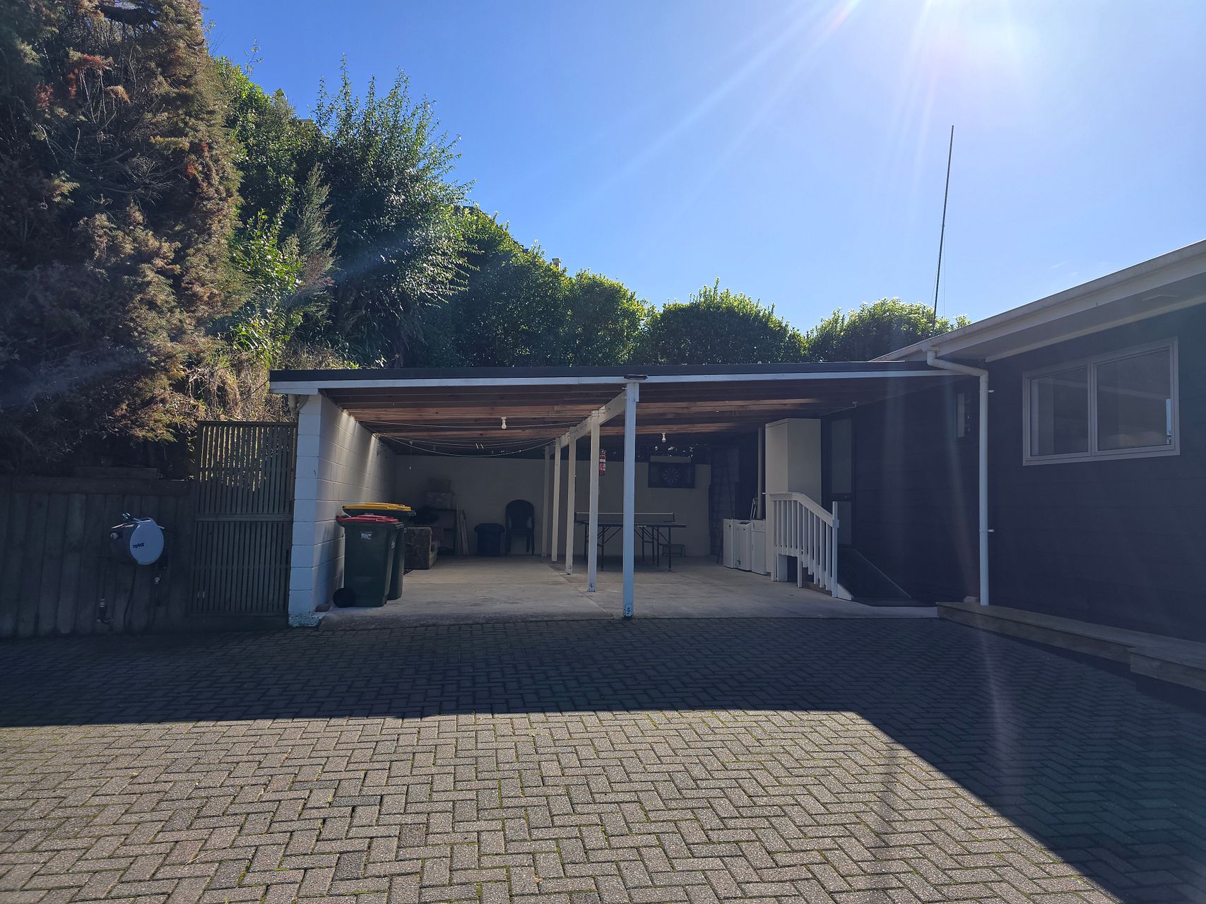 King bed in master and bunks in second room. Includes bbq, ping pong table, all crockery and cutlery, fridge x2, washing machine. Lovely outdoor dining. Plenty of parking. Safe neighborhood.