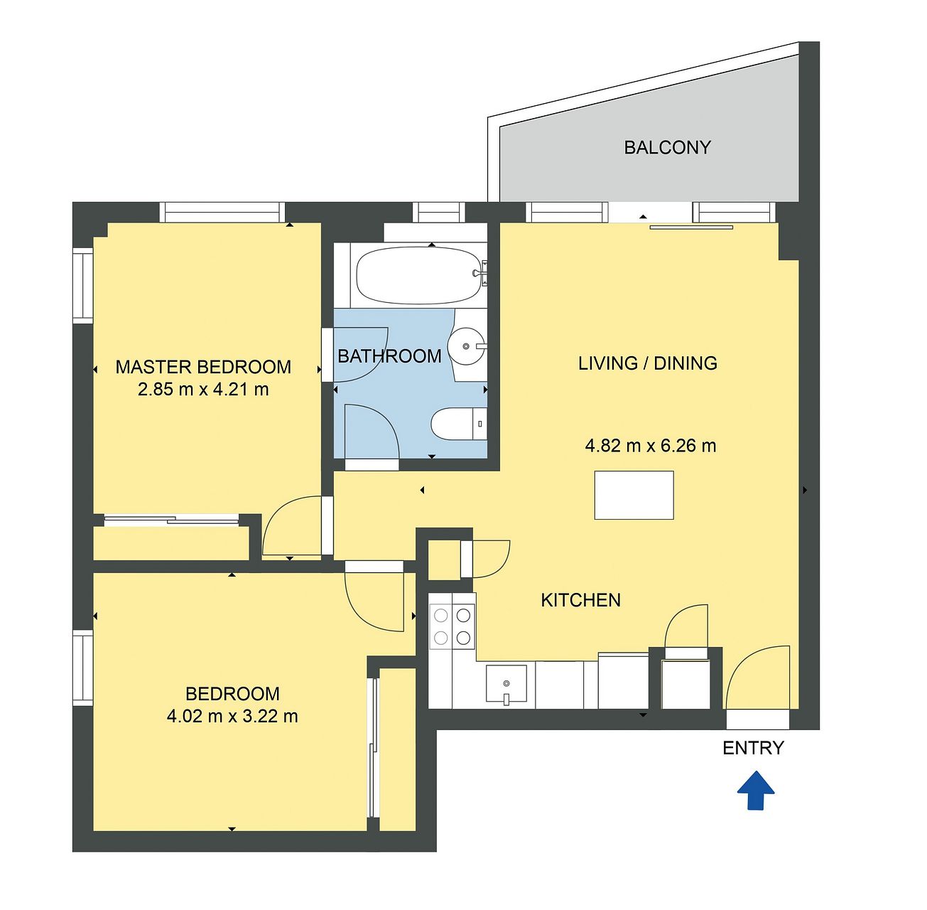Both bedrooms feature built-in wardrobes, and the living area extends onto a delightful balcony, offering a slice of outdoor serenity amidst the urban buzz.