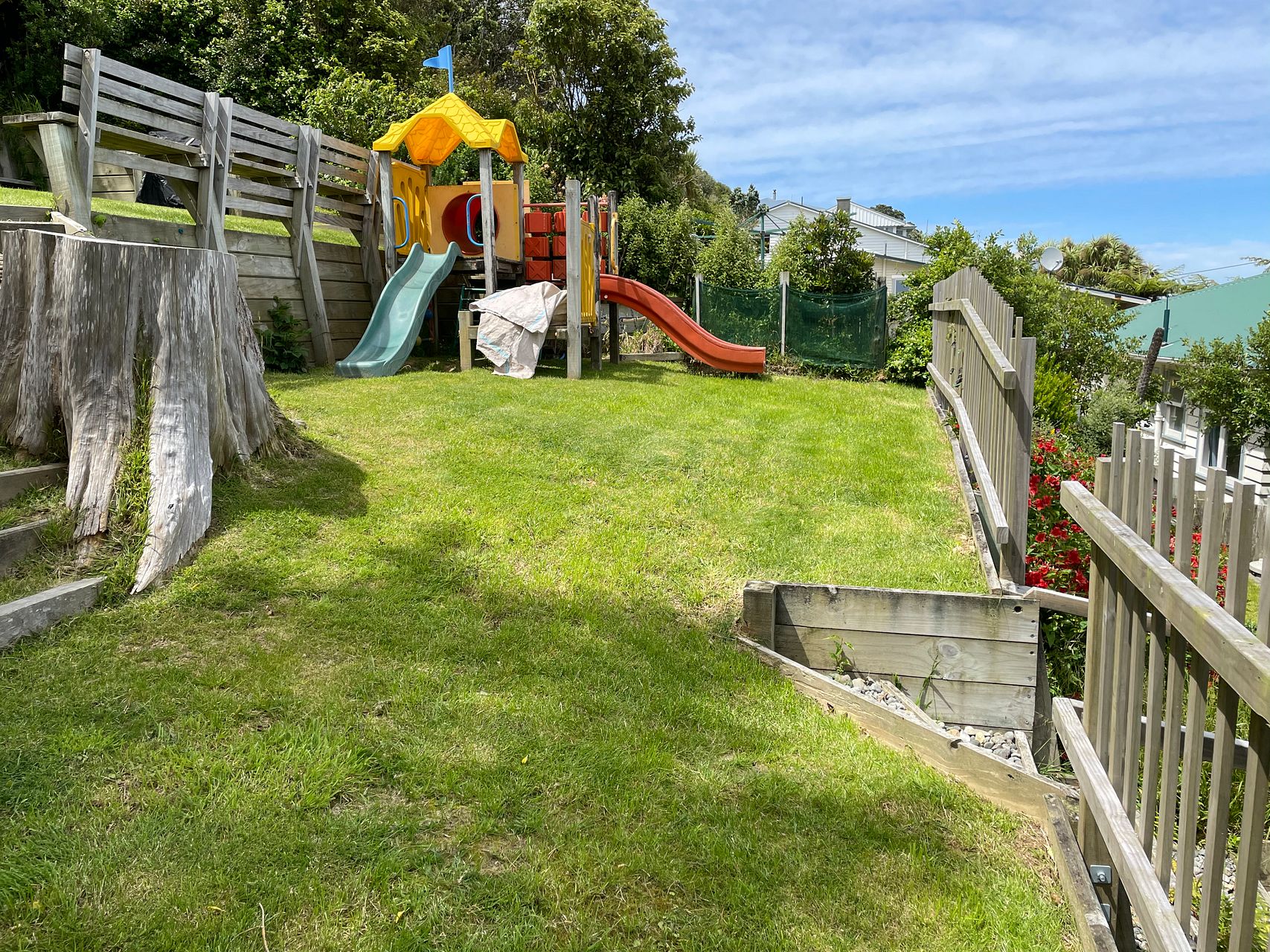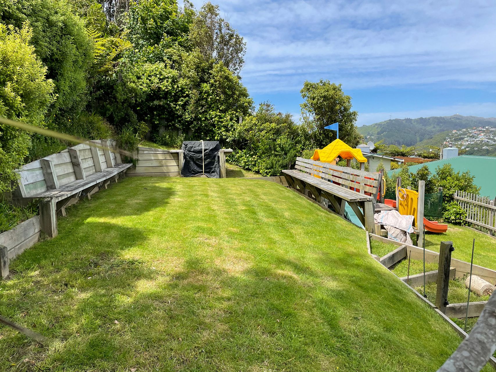 Situated above the road with great views across the valley and Karori for the last of the sun.