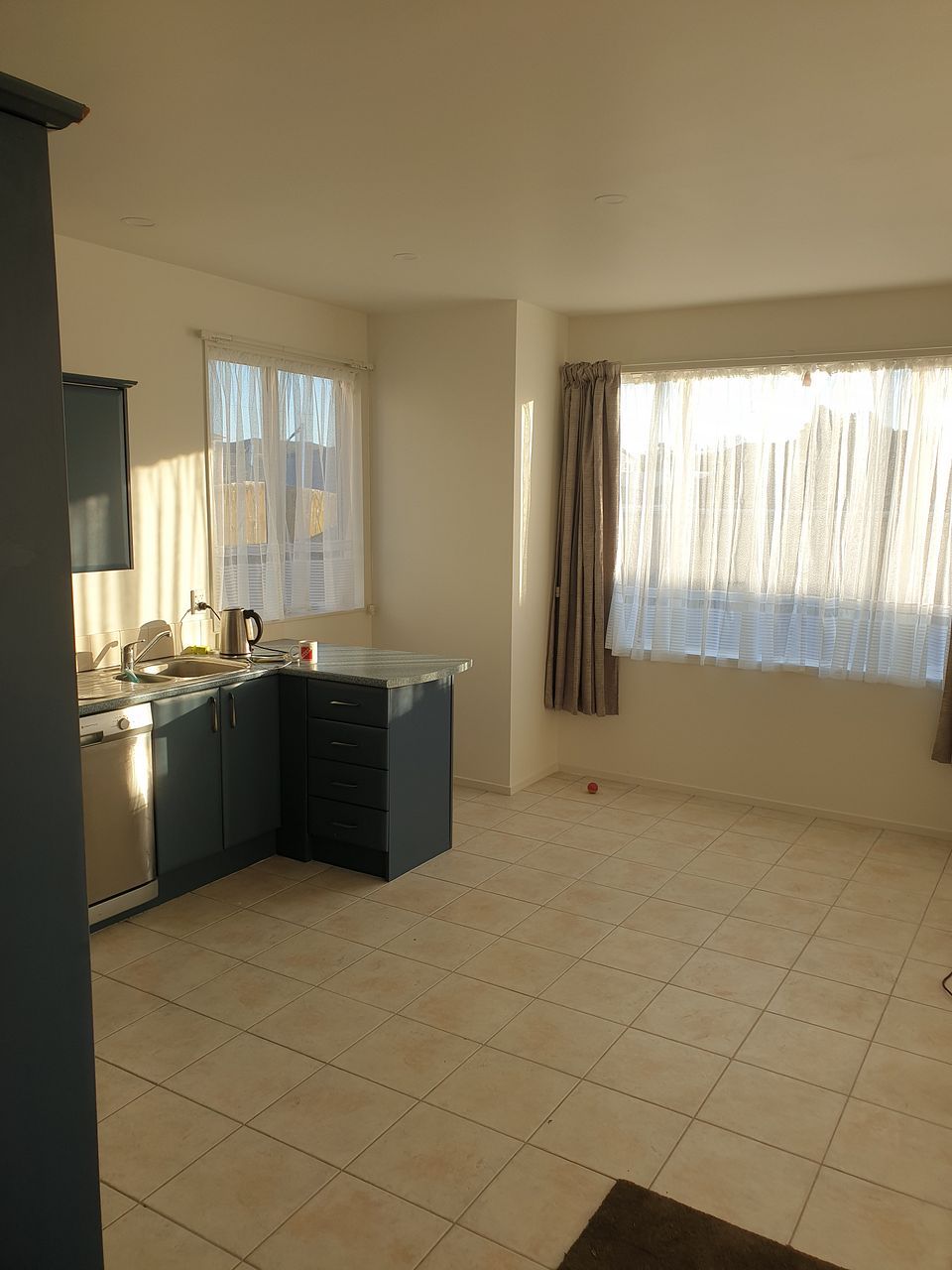 Double doors from kitchen/living area open out to a fully paved entertainment area. Outside is fully fenced private lawned area with a plum tree that drops enough plums to feed an army around Christmas period, a peach tree, and a children's playhouse .