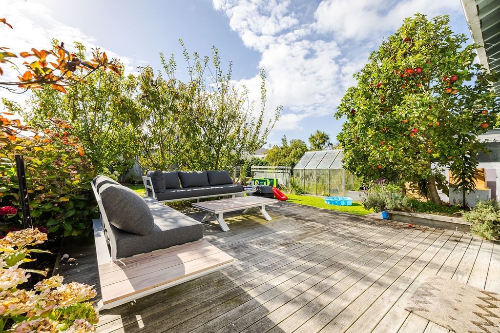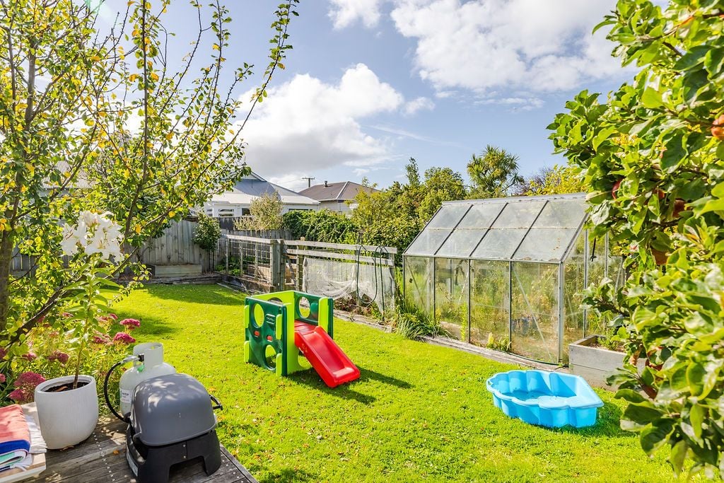Along with the sunny outdoor deck there is a spacious backyard, with a vegetable garden, fruit trees, and greenhouse. Two external sheds provide extra storage.