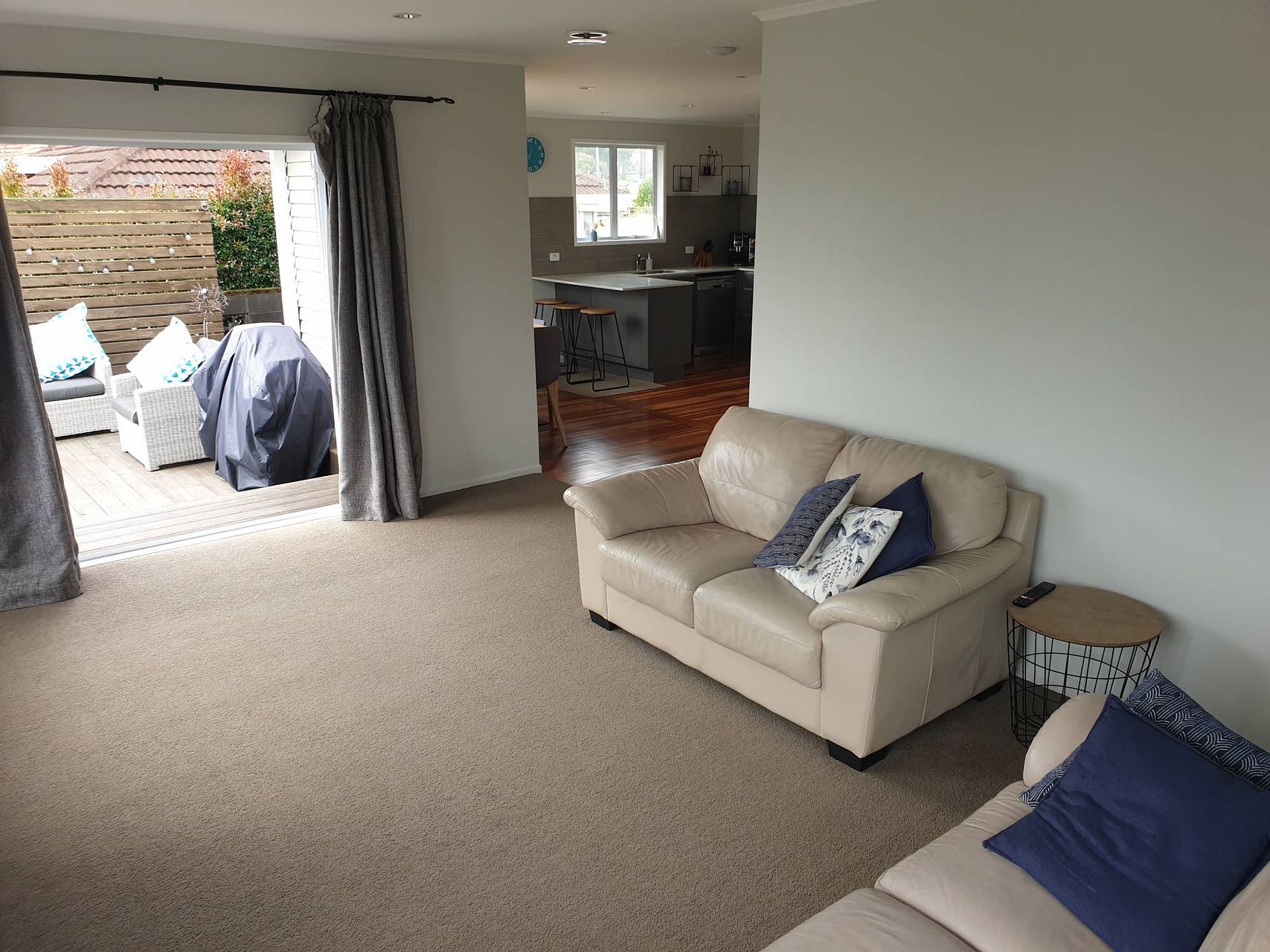 - Open plan kitchen, dining and living room with a renovated kitchen and walk-in pantry