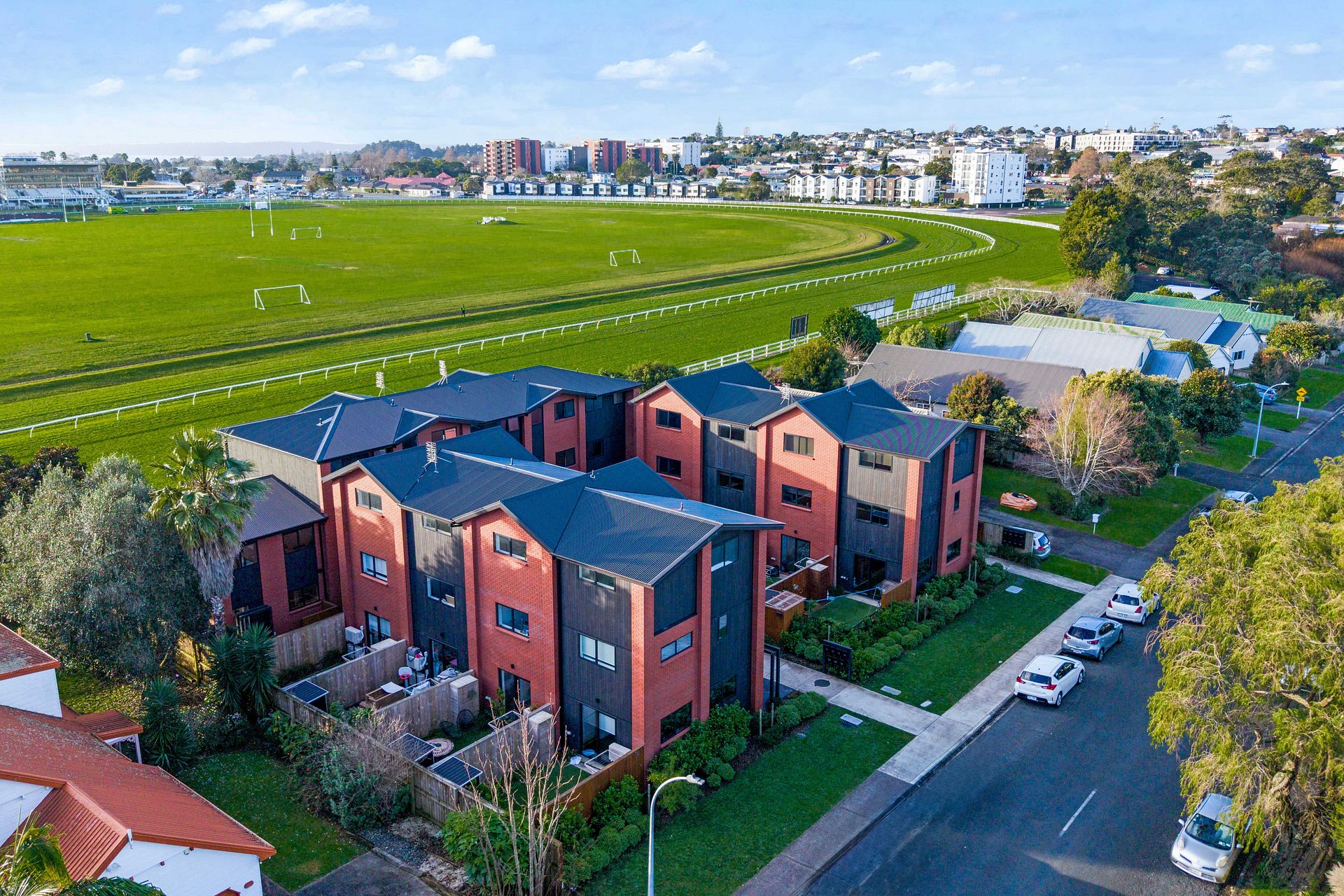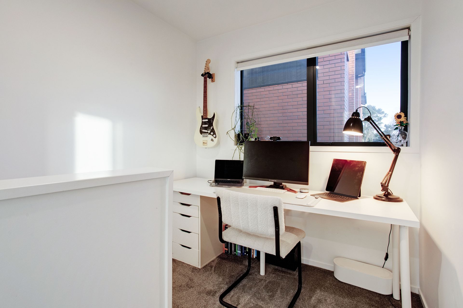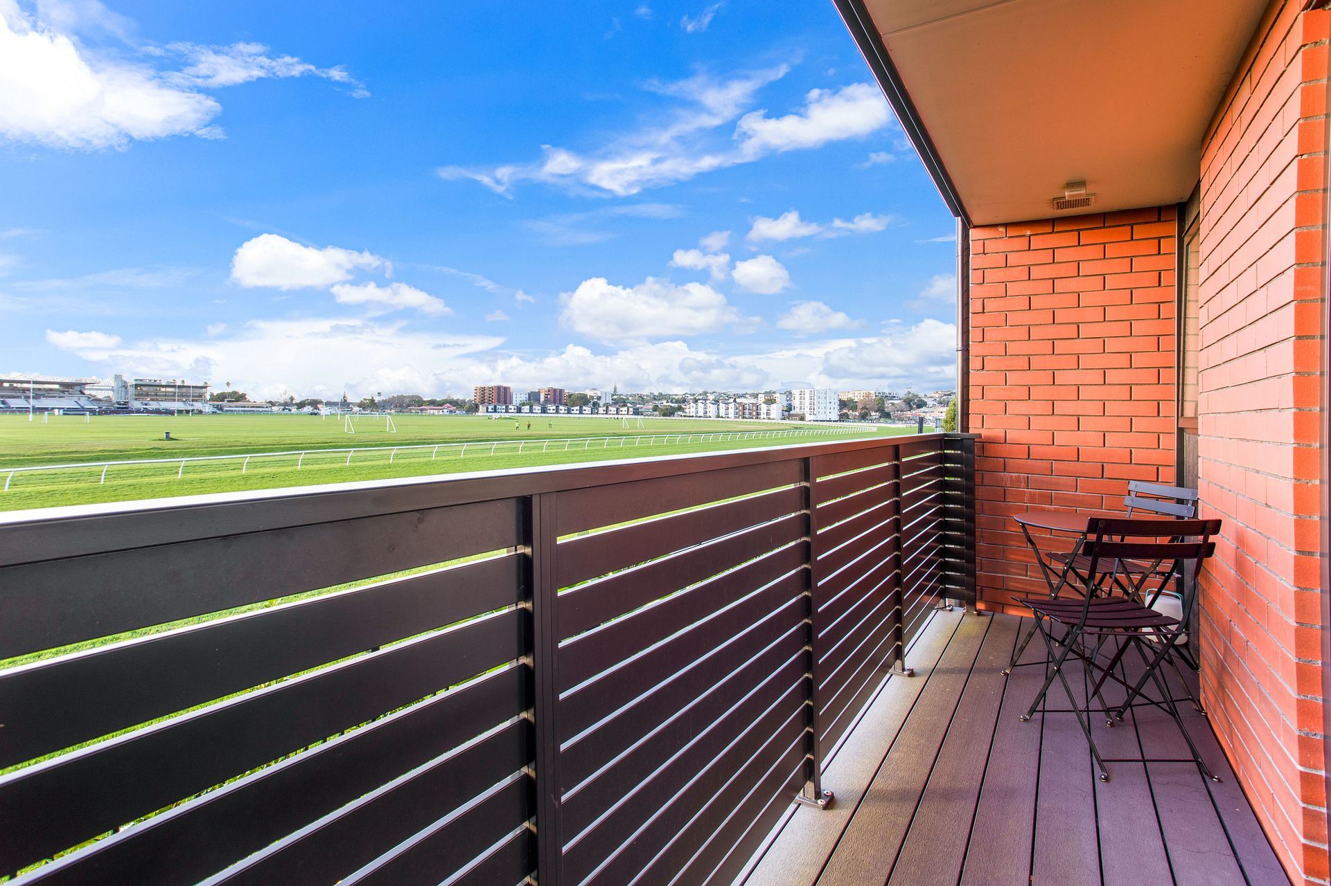 Upstairs you’ll find two bedrooms with built-in wardrobes, a modern, tiled bathroom with a built-in bidet and a generously sized study nook for WFH days. The northern bedroom opens onto a balcony with uninterrupted views across the racecourse for beautiful sunset dinners!