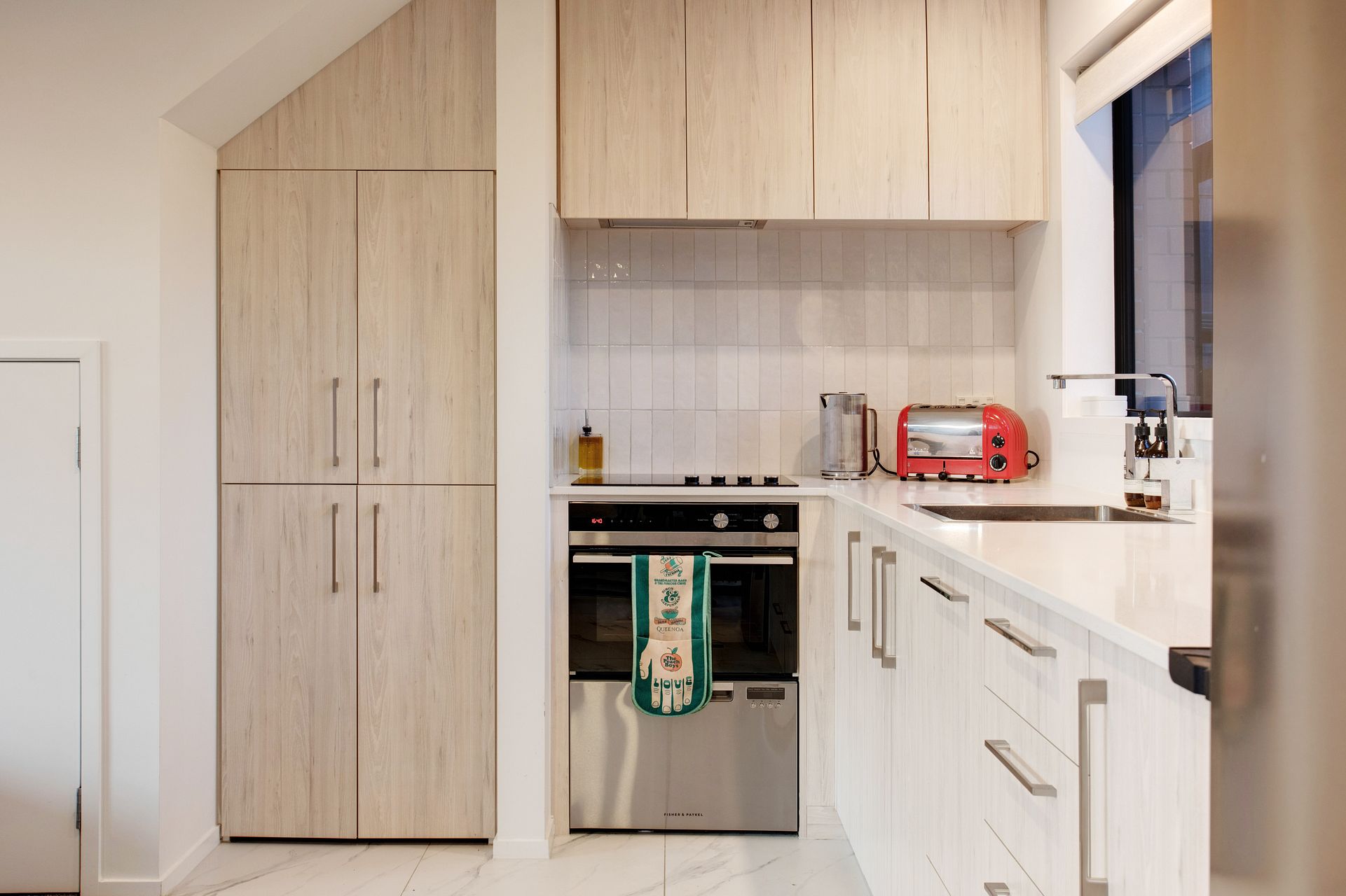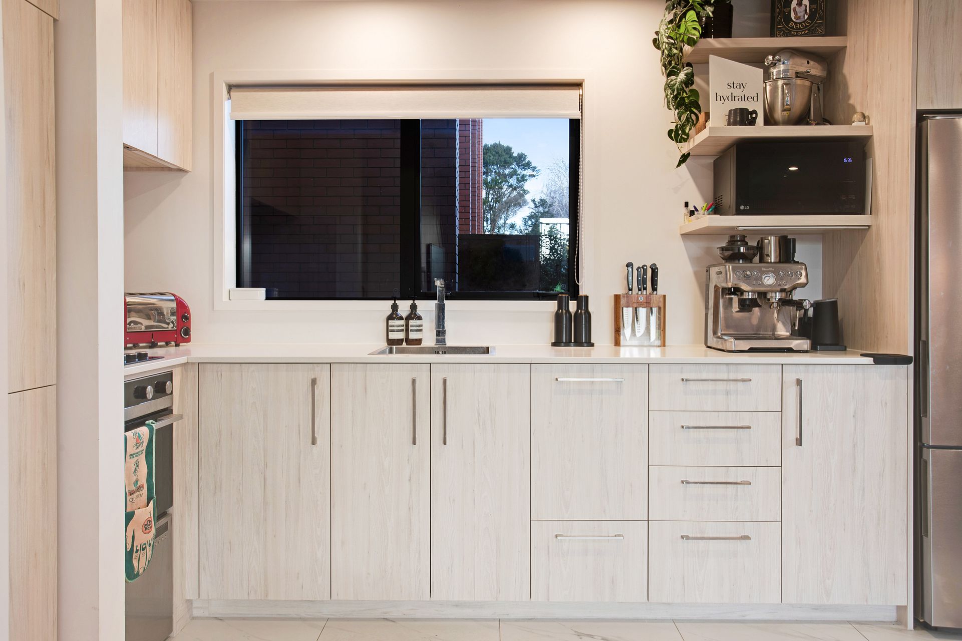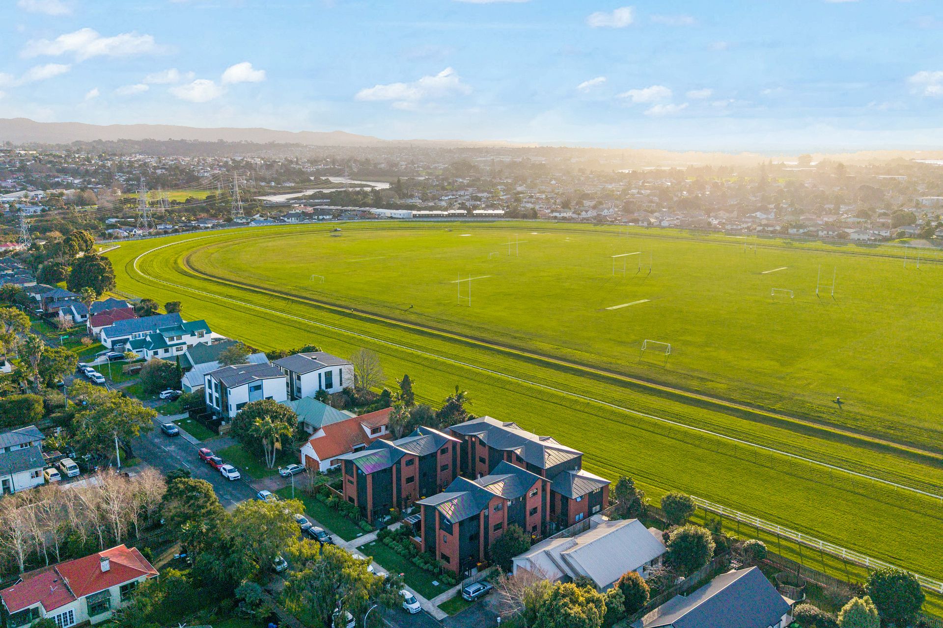 Upstairs you’ll find two bedrooms with built-in wardrobes, a modern, tiled bathroom with a built-in bidet and a generously sized study nook for WFH days. The northern bedroom opens onto a balcony with uninterrupted views across the racecourse for beautiful sunset dinners!