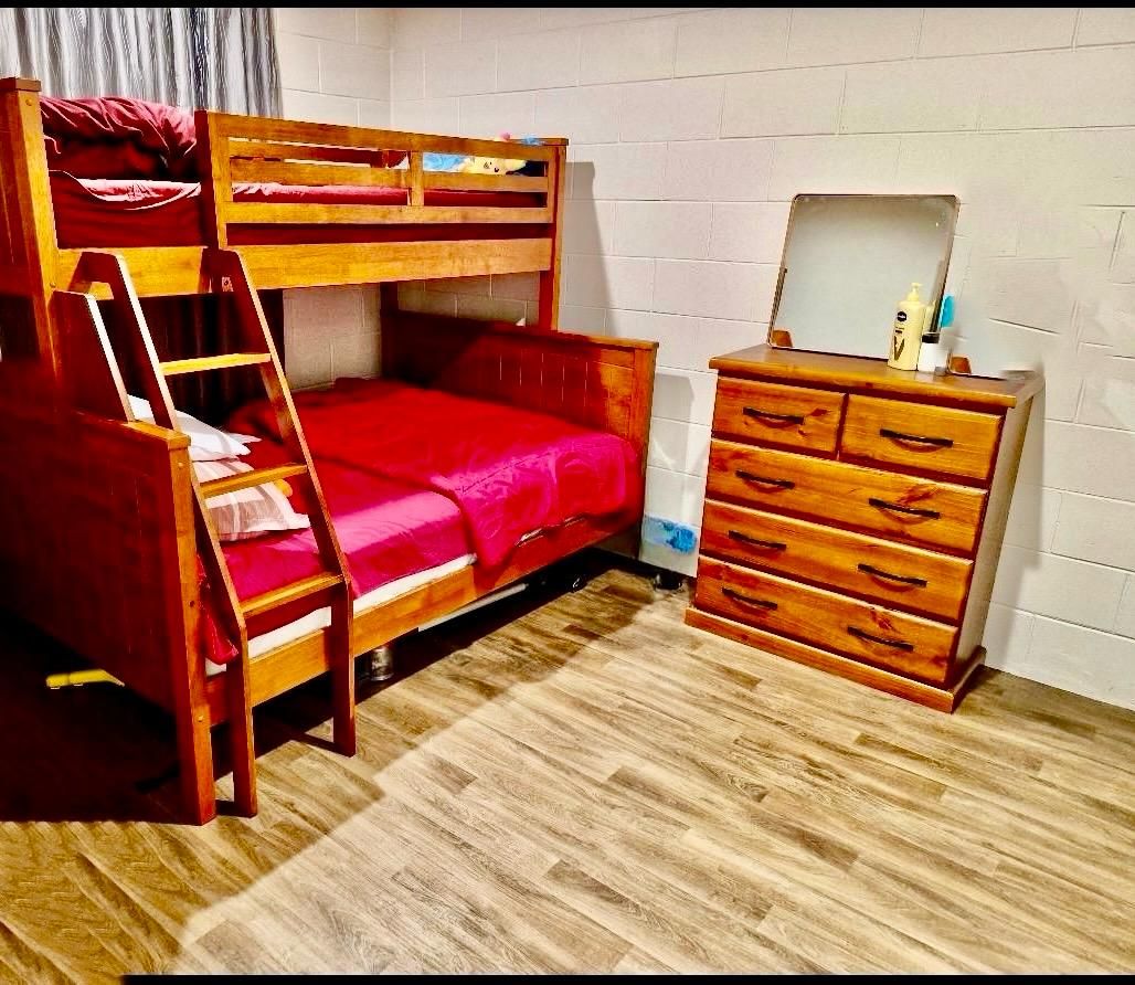 Large bedroom with inbuilt wardrobe.
