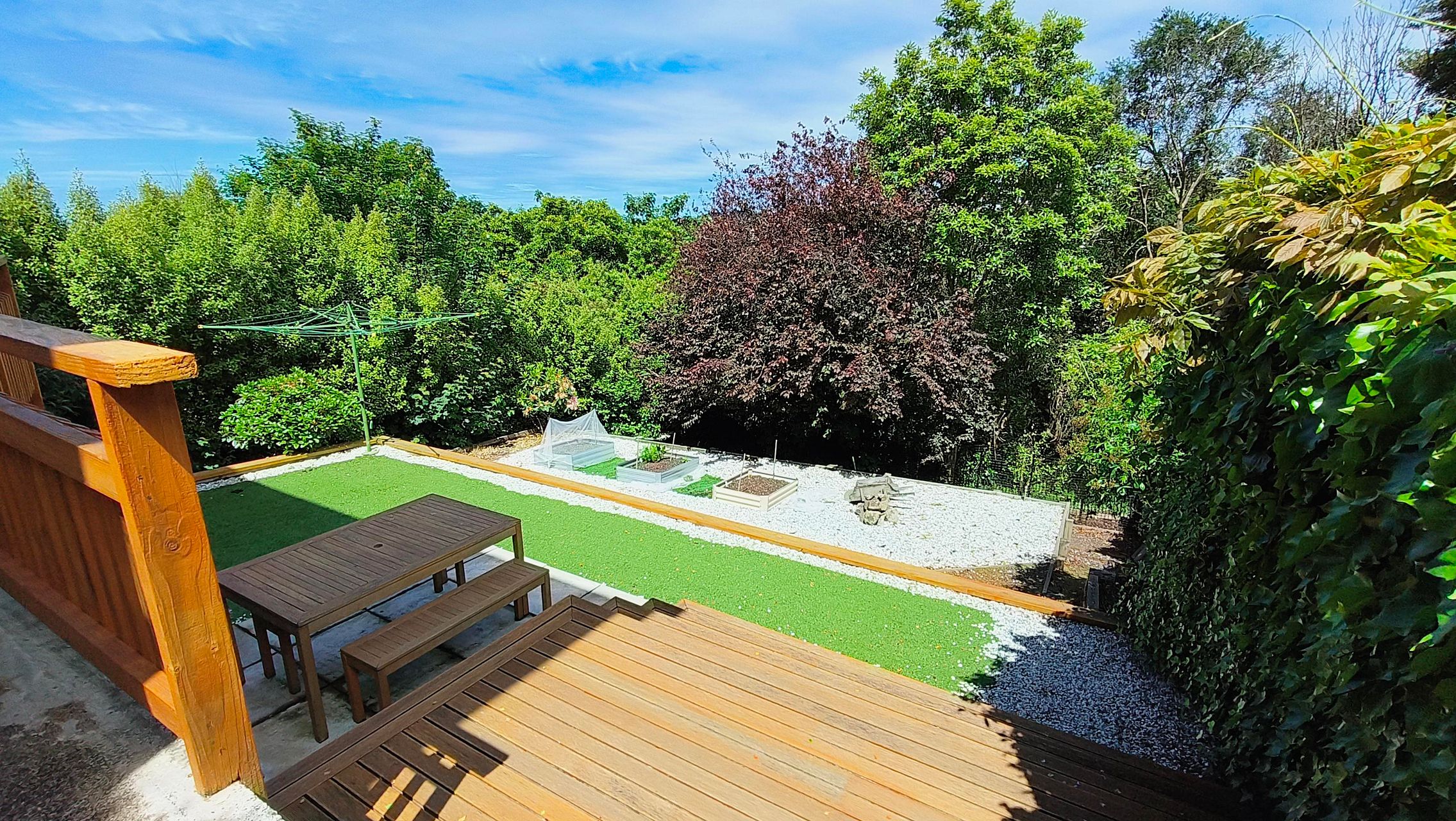 -> Private Backyard with deck and Low maintenance garden