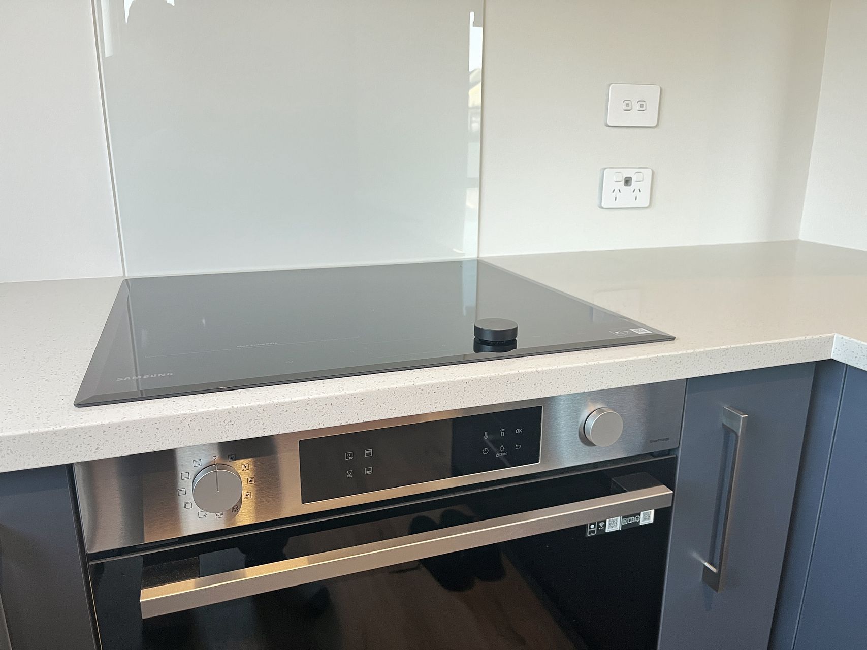 - Kitchen with lots of storage space, stone bench top, ceramic cooktop, wall oven and dishwasher