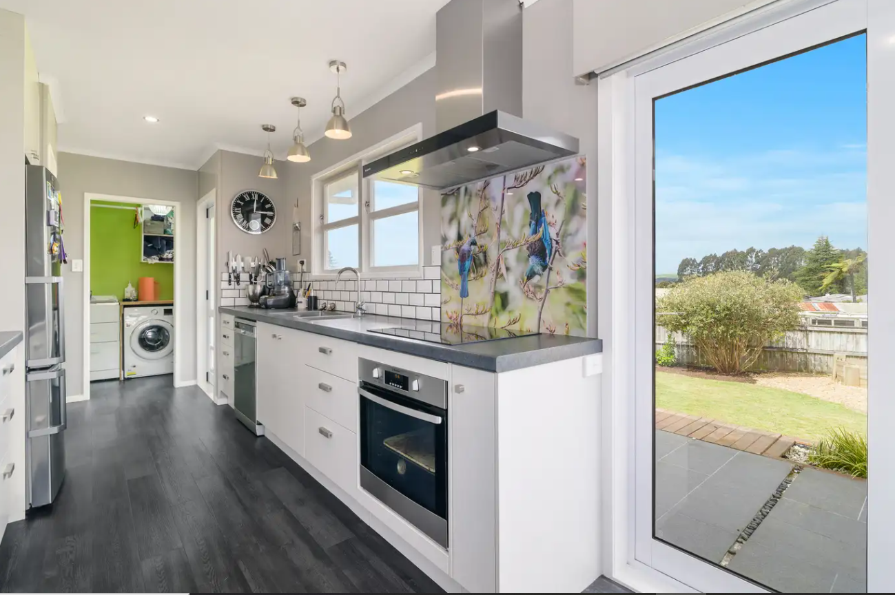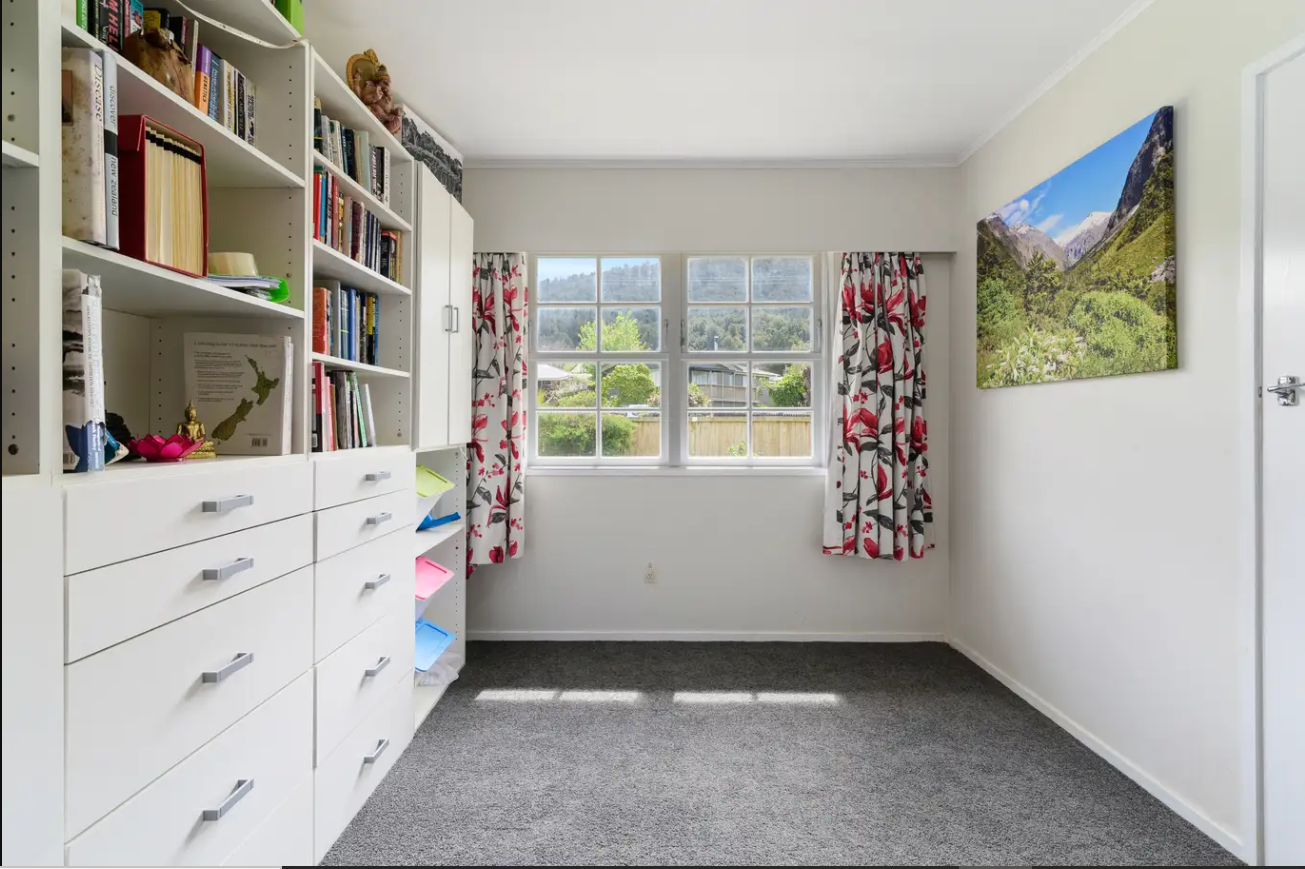 The large garage has a adjoining room suitable for an office or home gym ( not to be used as a bedroom) which the owner is contemplating making into a consented sleepout.