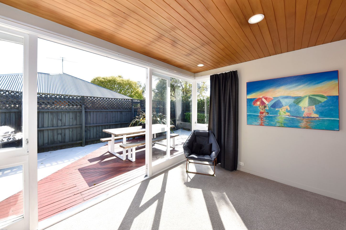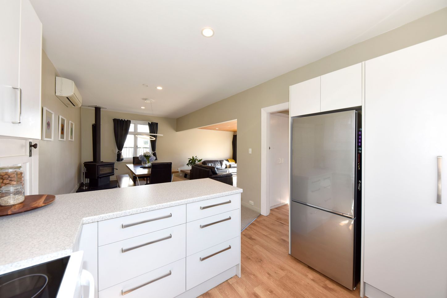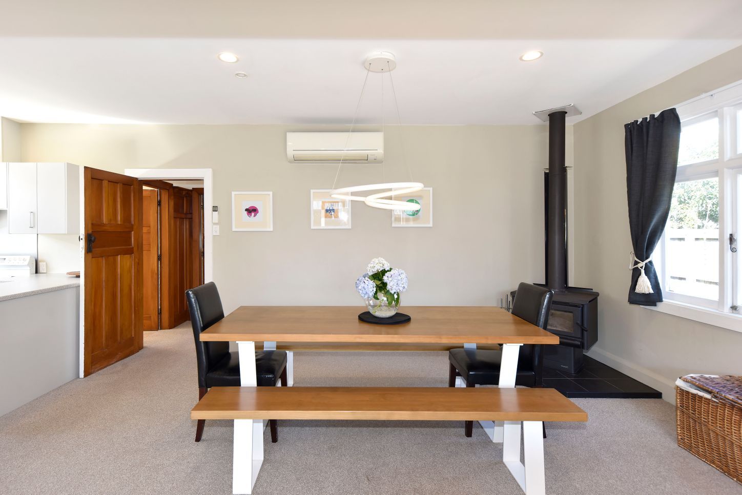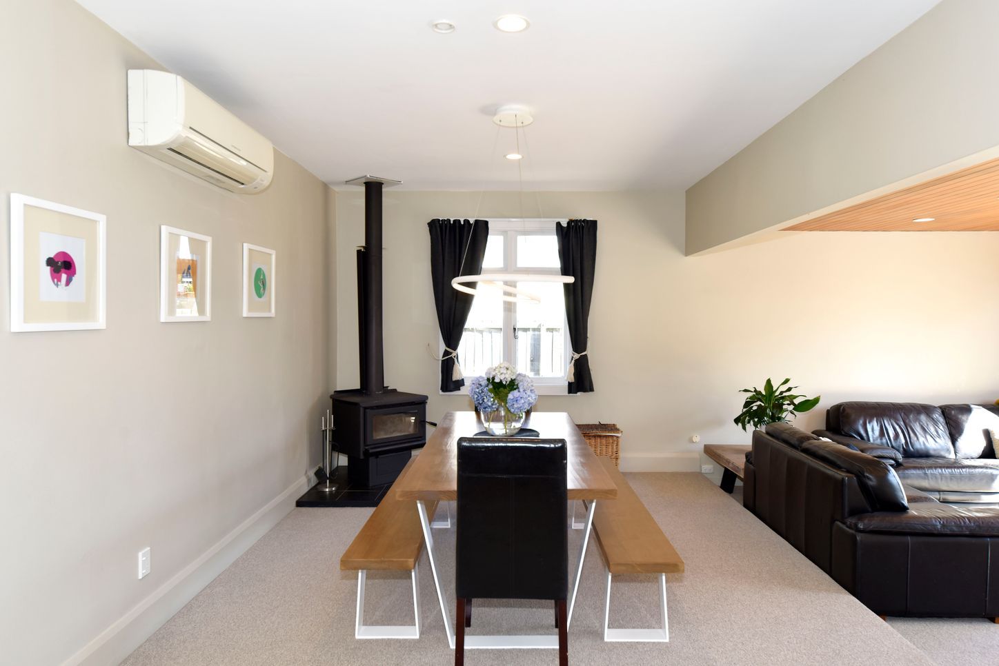 A heat pump & fireplace keeps the home cosy year-round.