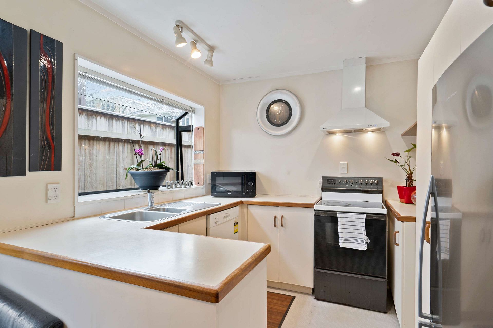 This 3 bedroom house is fully fenced with a lovely park view. It has 2 double and 1 single bedrooms; the single bedroom can be used as an office. 1.5 bathrooms including 2 toilets (one off master bedroom with vanity). Open plan living with a heat pump, separate kitchen with dishwasher. There is a flat lawn and balcony in front of the house. A single internal-access garage with an automatic door, plus a carport and off street parking.