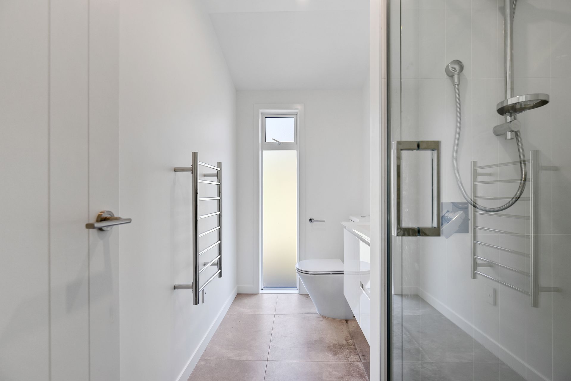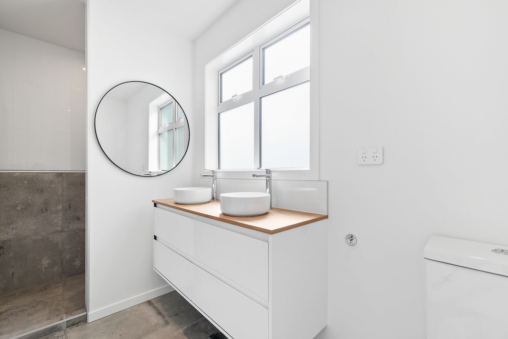 The property is of modern construction, has three bedrooms, two bathrooms and an additional toilet downstairs. There is open plan living opening to outdoor areas on each side of the living area.