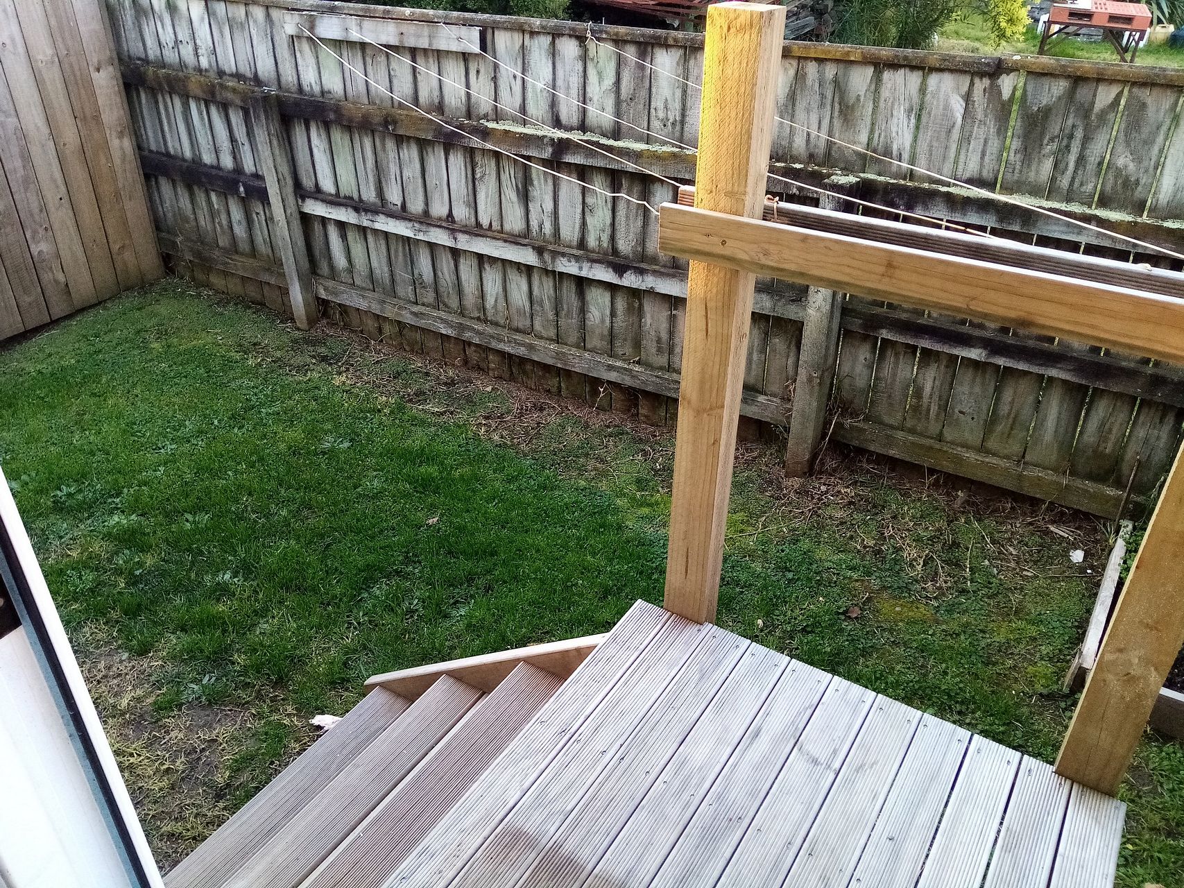 Front deck and rear garden, sunny and bright.