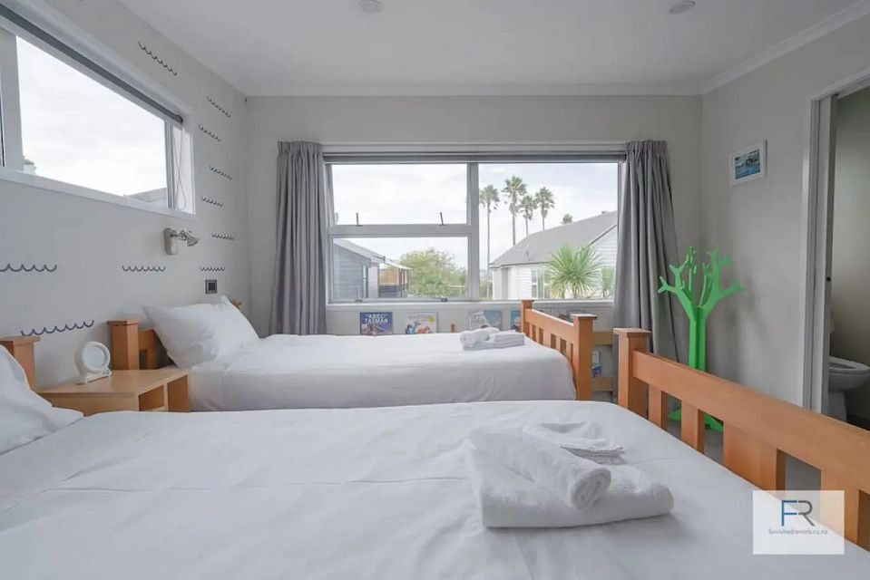 This home is set over two levels that maximise the sun. On the lower level is an open-plan kitchen, dining and living area, complete with sliding doors that lead onto a lovely private deck and garden. Also located on the lower level is a queen bedroom, and full bathroom. Upstairs are three further bedrooms. The master bedroom has a walk-in wardrobe and ensuite bathroom, a queen bedroom also with ensuite bathroom. There is also a single bedroom upstairs.