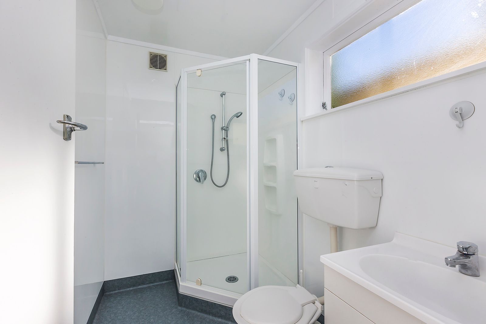 Private lower flat suitable for single/couple. Studio unit (bedroom/lounge combined) with separate bathroom, kitchen and laundry/storage unit. The unit has a heat pump. The property is accessed via a path shared with the upstairs unit, but fully separate access/amenities (opportunity to share WiFi if desired).