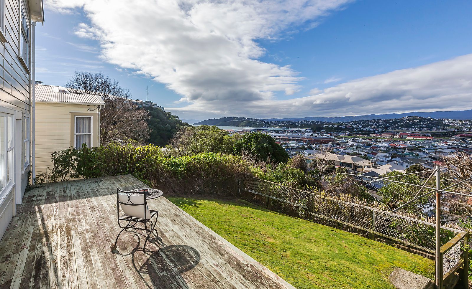 Unit has access and sole use of the large deck with great views over Lyall Bay and the South Coast (note the photos are slightly outdated and the garden is more overgrown now). Lawn/garden maintenance included in rent.