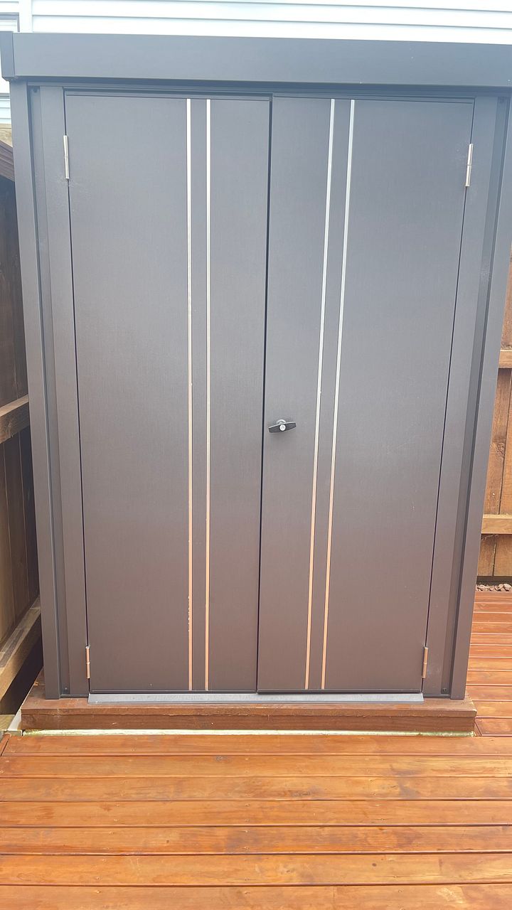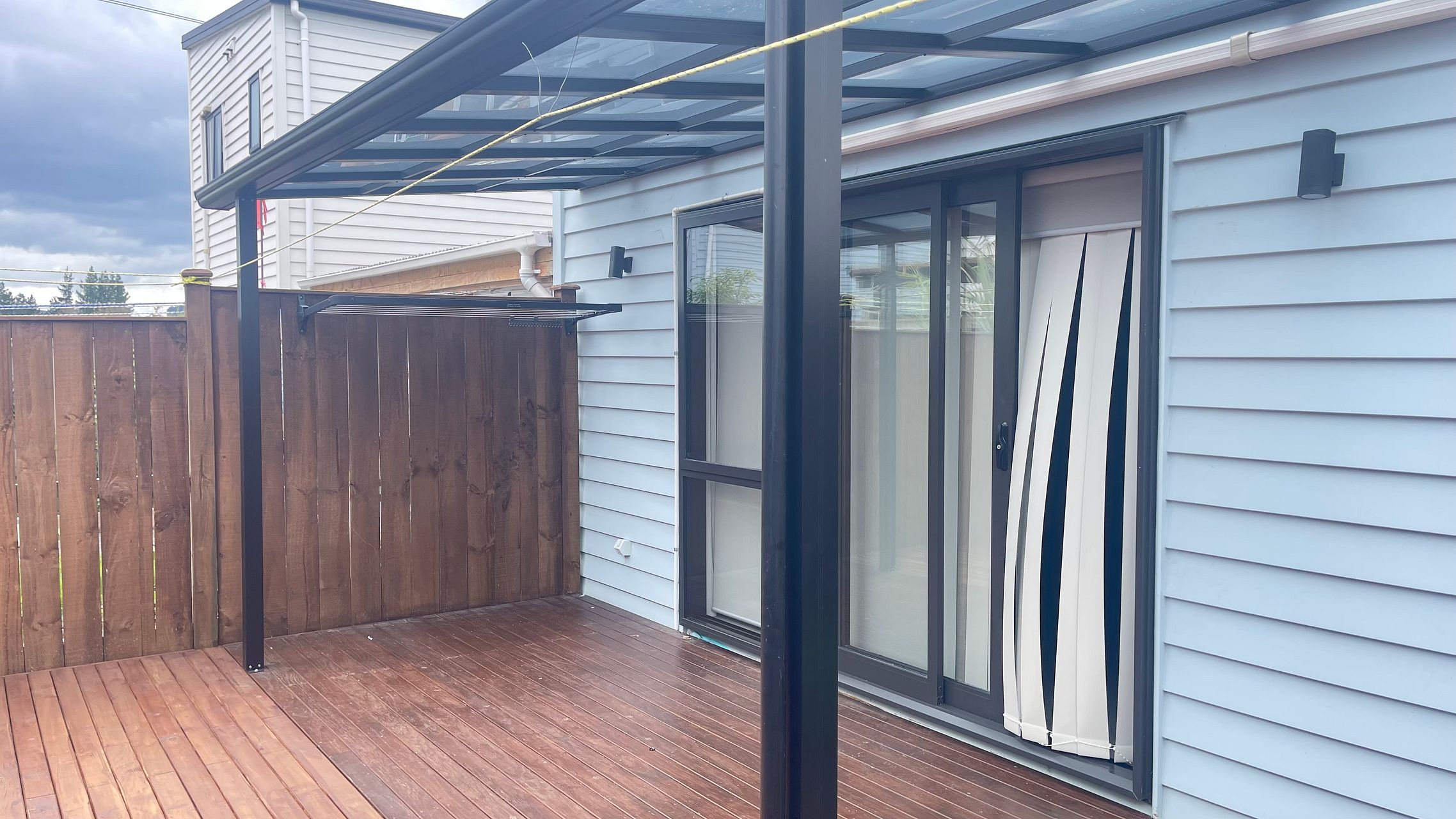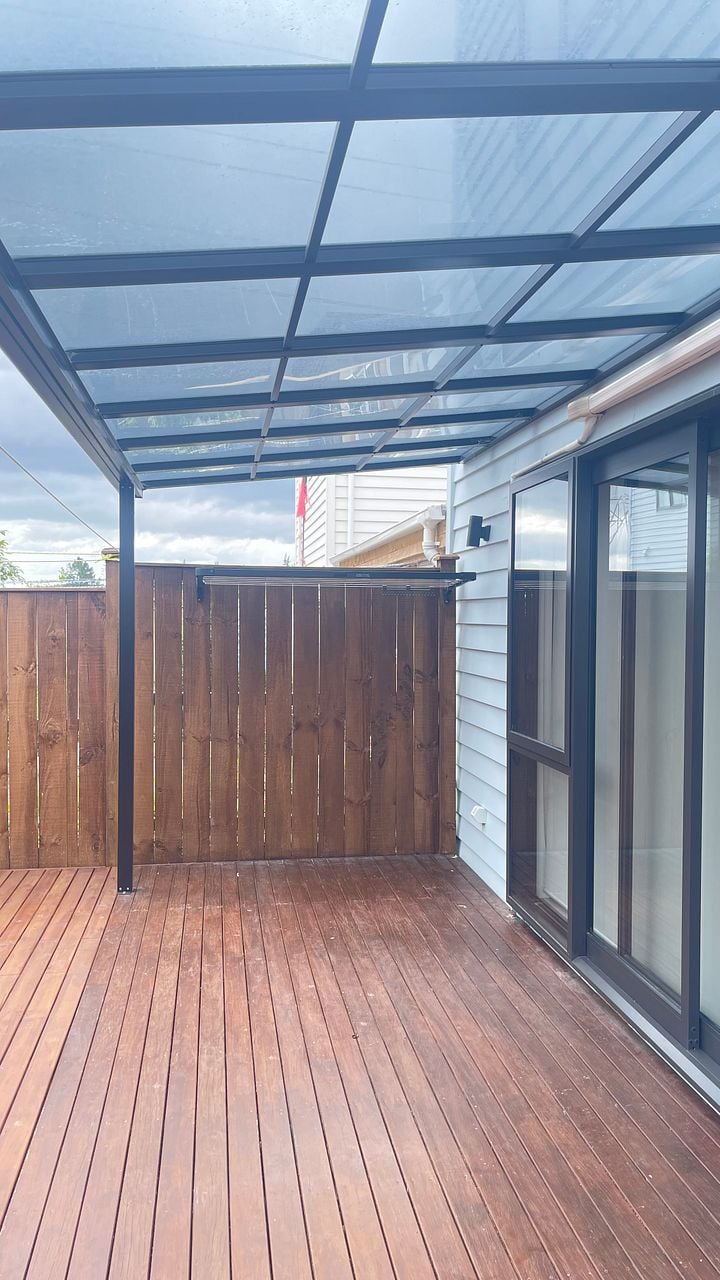 - A pergola covers a good size deck