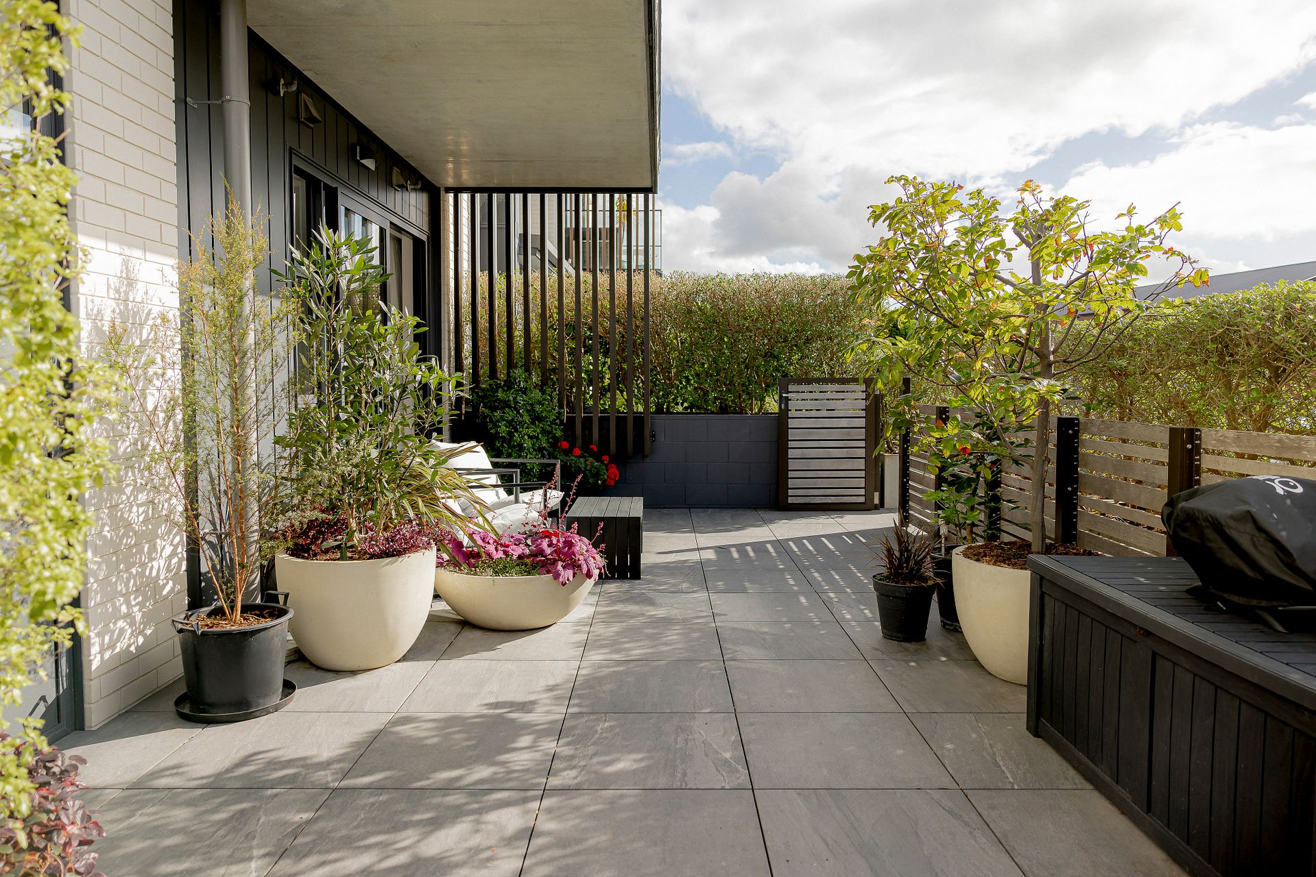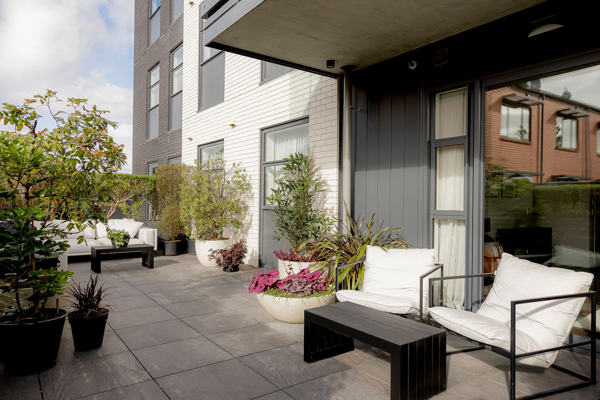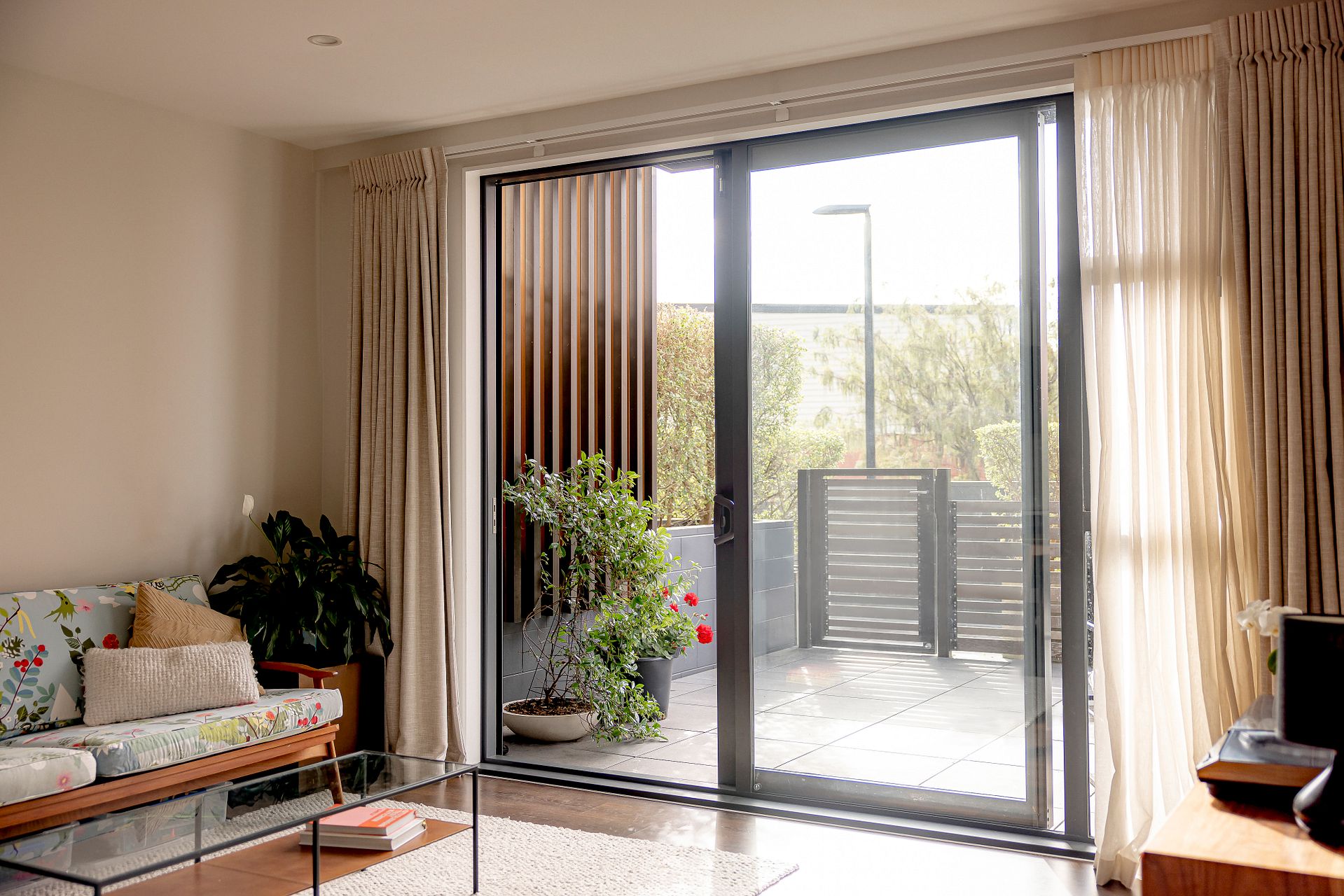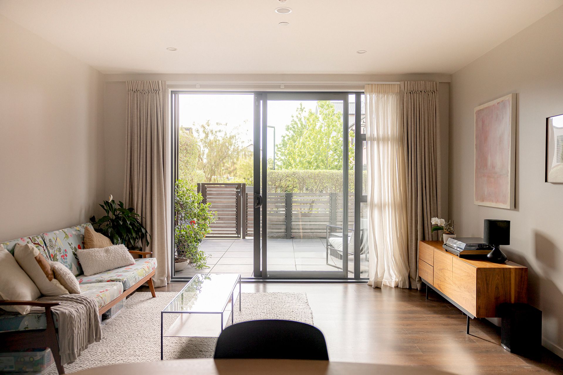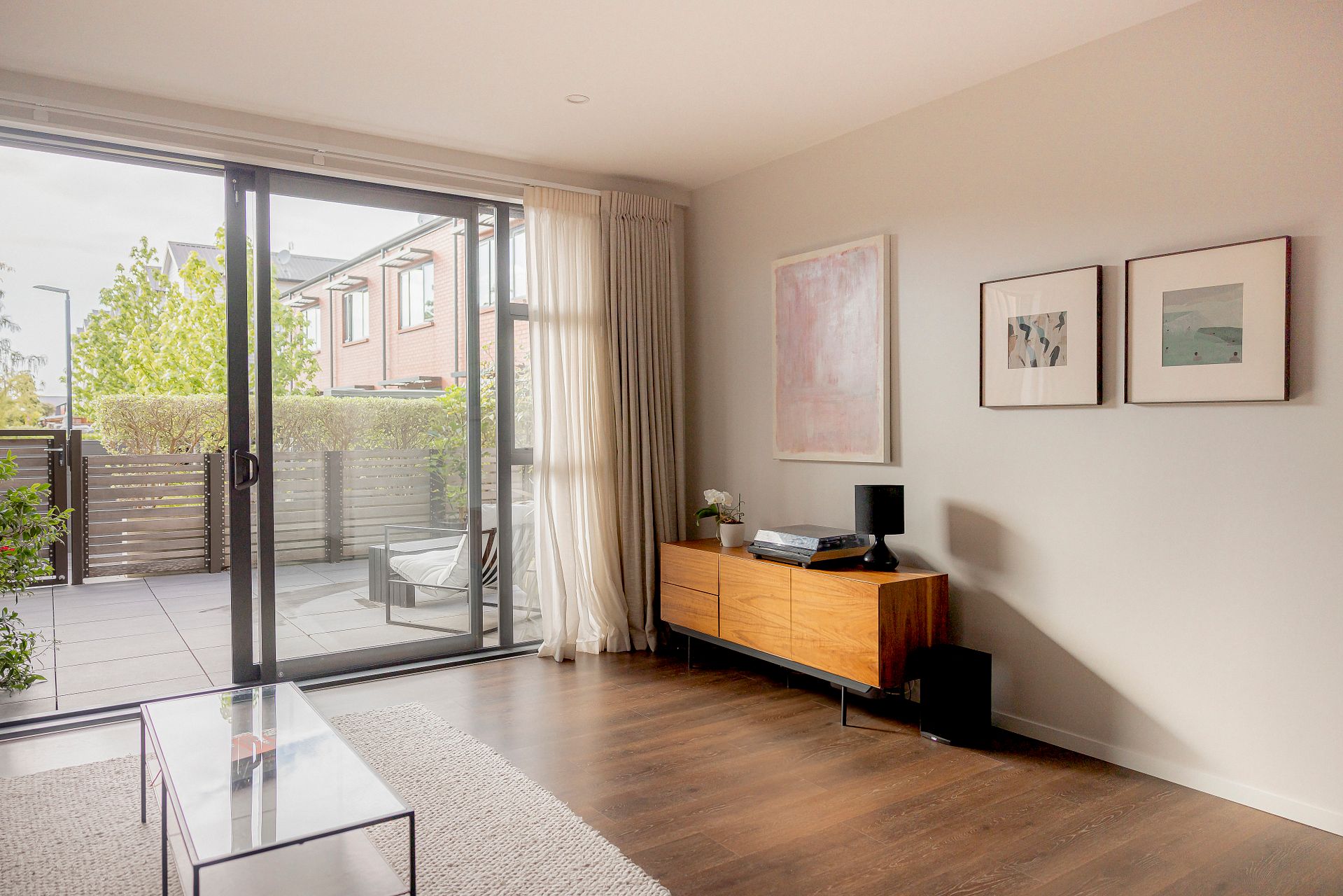 Situated on the ground floor, with external access and an extra-large fully paved courtyard for the perfect summer entertaining space. Beautifully dressed with gorgeous linen curtains – this safe and friendly home is double-glazed for warmth and quiet.