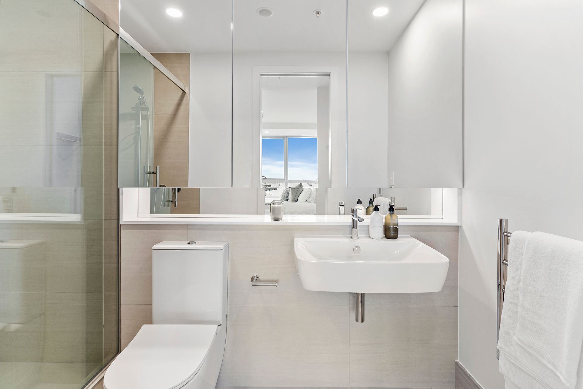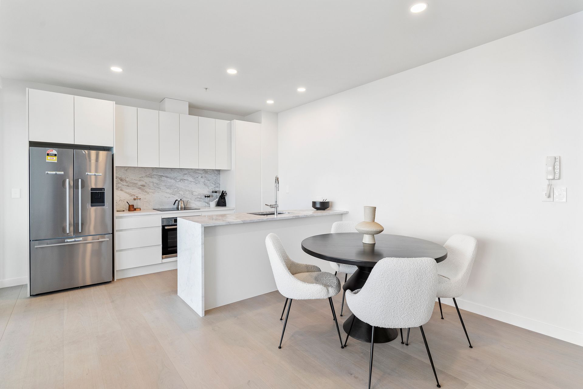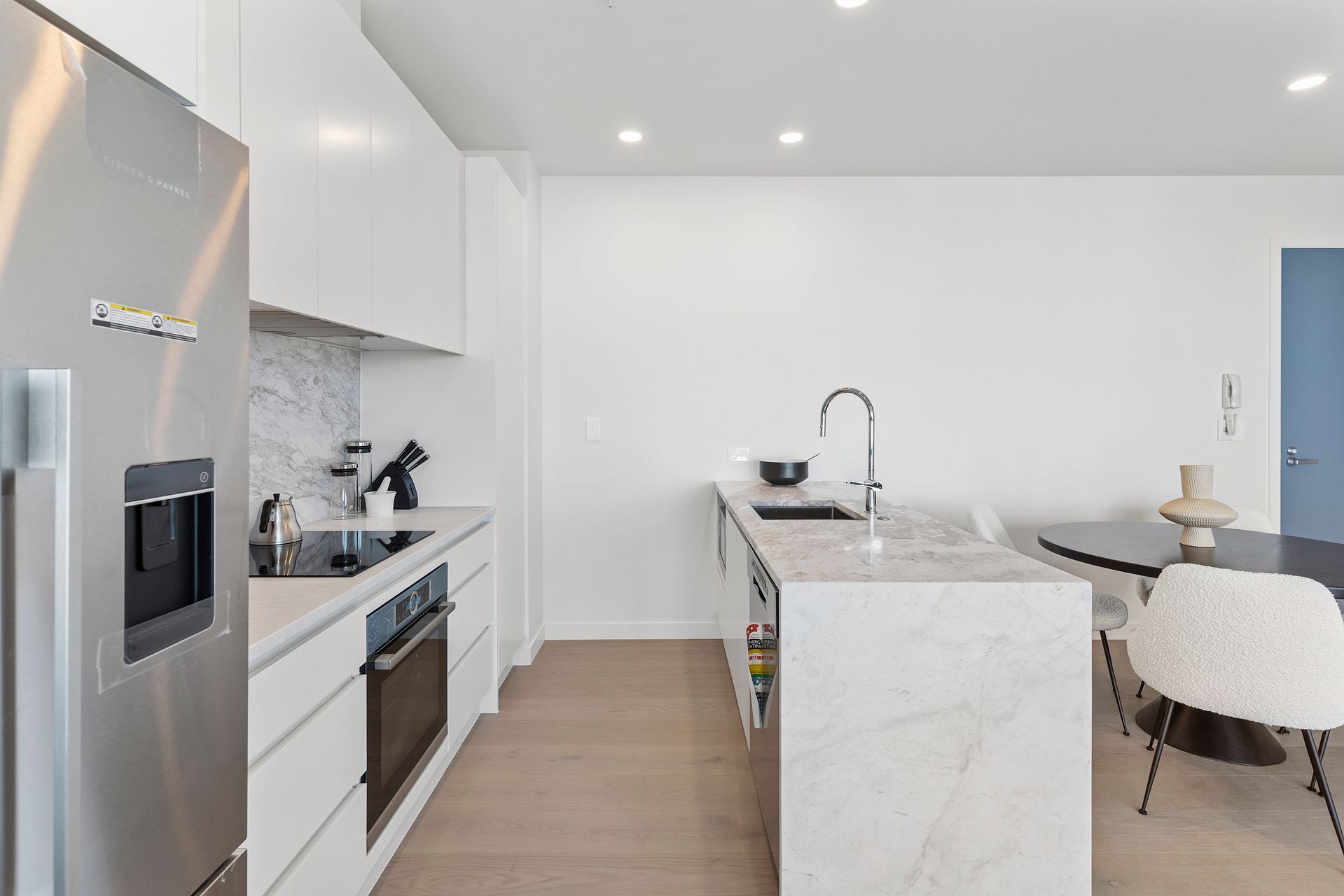 This furnished apartment makes moving in easy, with two queen beds and your lounge and kitchen ready for you to use. A full Soren-liv designer furniture package makes this a stunning space.
