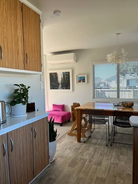 Sunny three bedroom home in Arataki, Mount Maunganui. Two double bedrooms, then the third can fit a single, or a cot or be a study. Fully fenced, with vege garden and outdoor area. Lovely quiet street with great neighbours. Right next to a green park, and then a large new playground is at the top of the street. Lawns included in rent, water to be paid by tenants direct to Tauranga City Council.