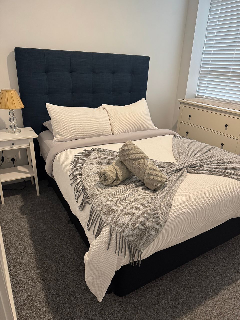 Apartment has 2 Queen beds, the space is fully furnished.