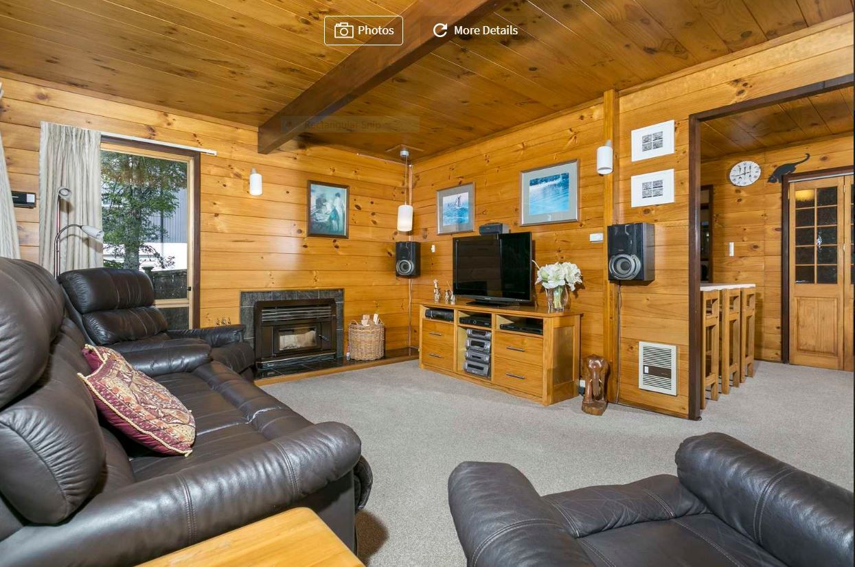 Downstairs retains much of the original character look of the Lockwood house with its all-wood interiors. The kitchen offers plenty of storage space and room to move, with the added benefit of two sinks and a water filter; while the cosy living room (with fireplace) and adjacent dining room offer great flow out onto the deck - cleverly built around the native trees growing there at the time to create privacy and shade.
